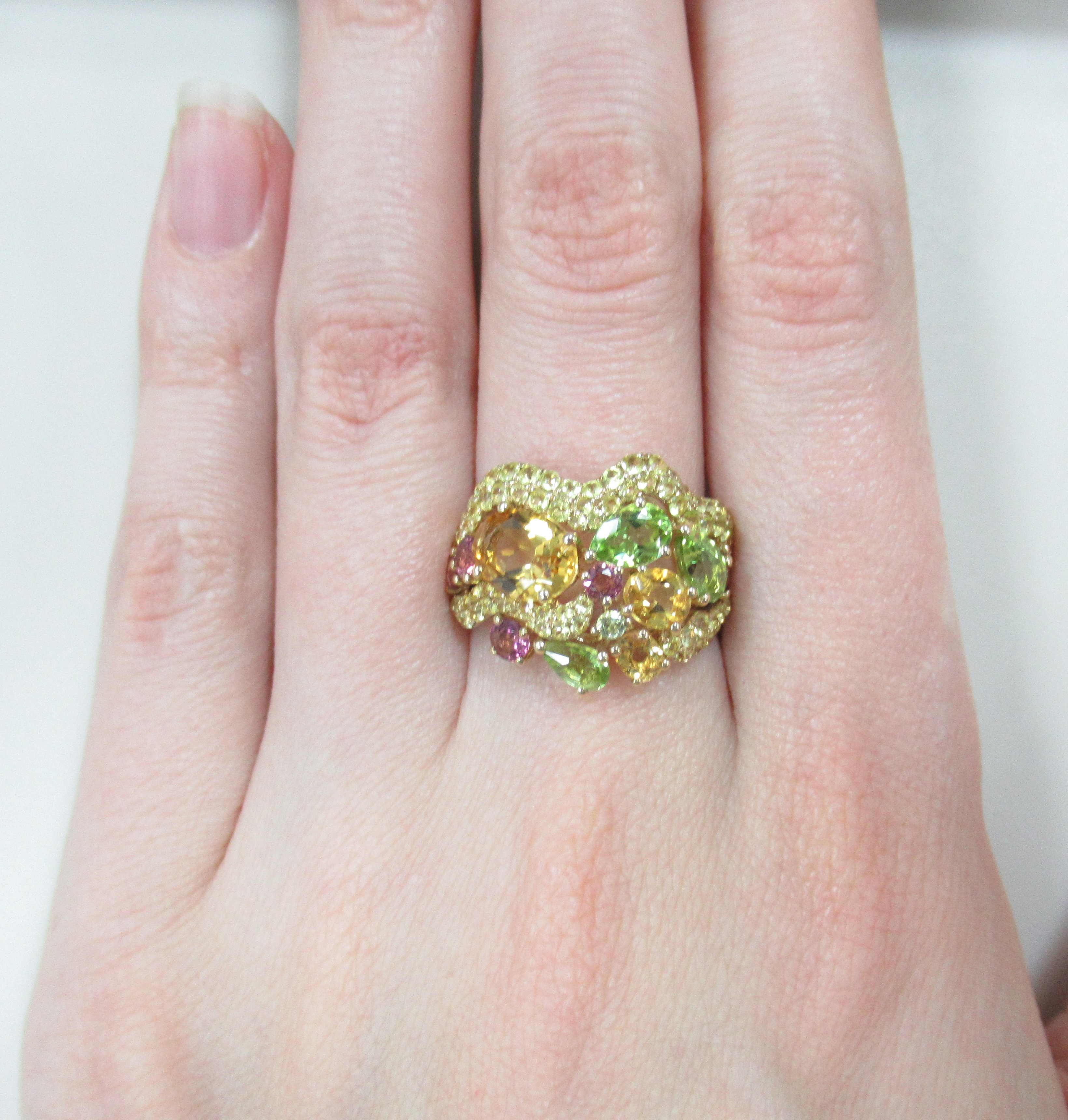 Кольцо из золота с хризолитами