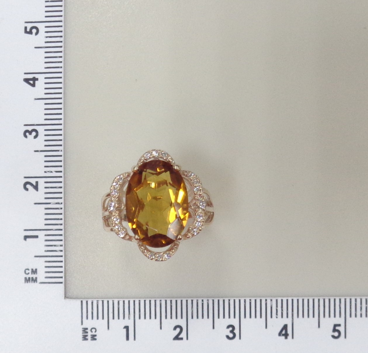 Серебряное кольцо 925 пробы; вставки 1 Цитрин; 59 Фианит бесцв.;