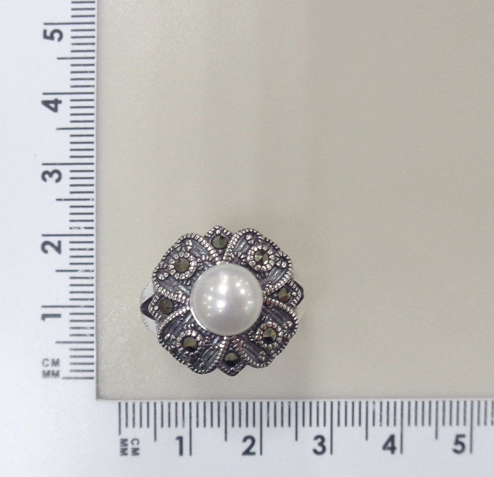Серебряное кольцо с перламутром и жемчугом "Цветок"