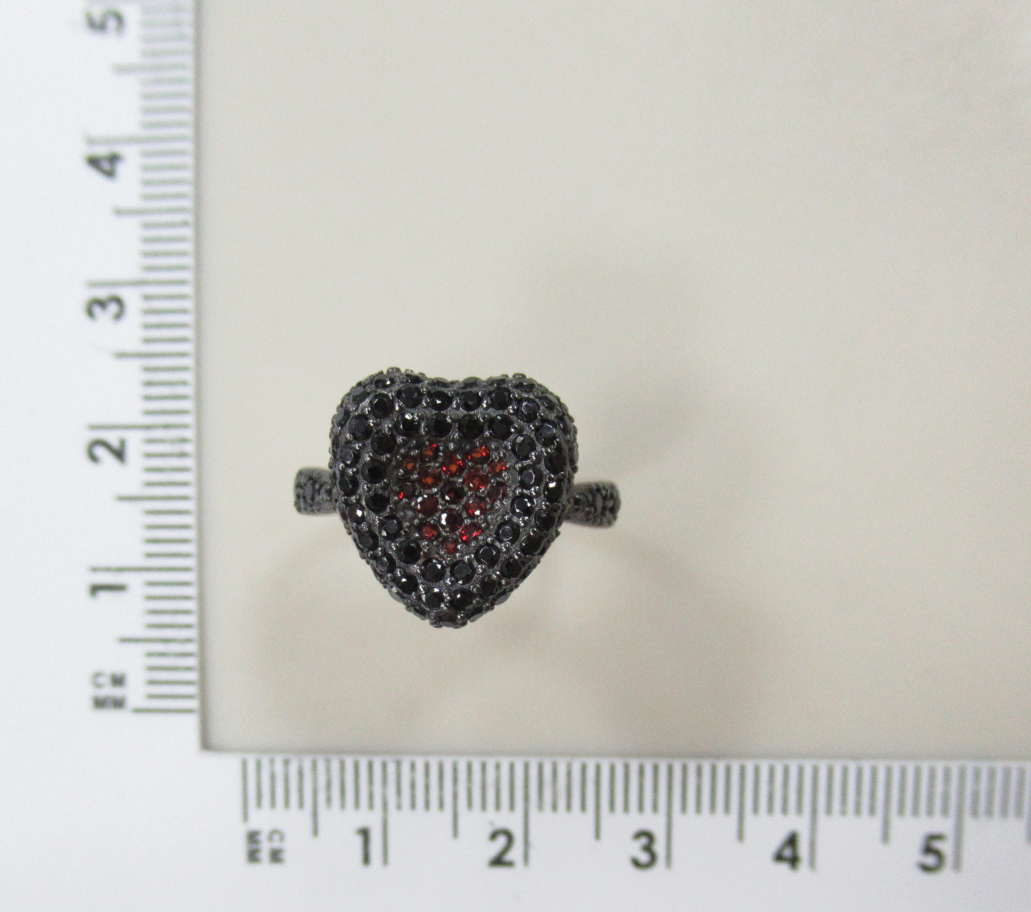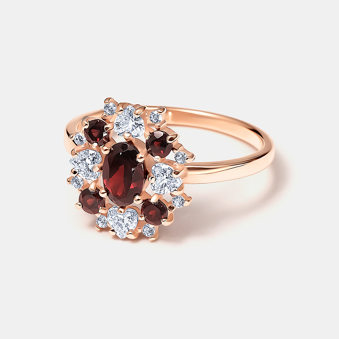 Серебряное кольцо с гранатами и шпинелью "Сердце"