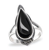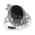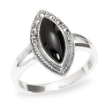 Серебряное кольцо 925 пробы; вставки 1 Оникс им. черный; 20 Куб. Цирконий бесцв.;