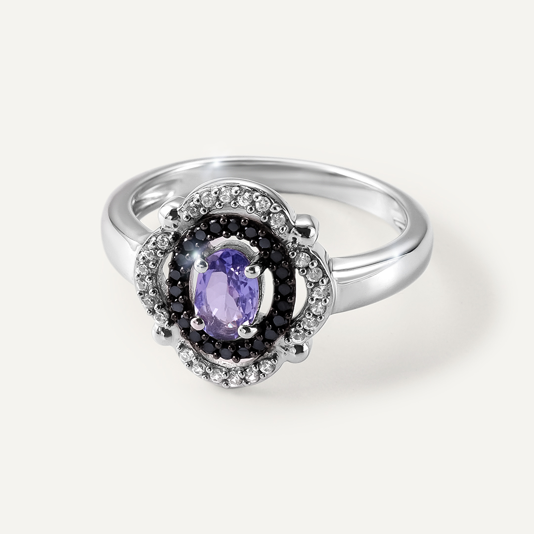 Серебряное кольцо с танзанитом и шпинелью