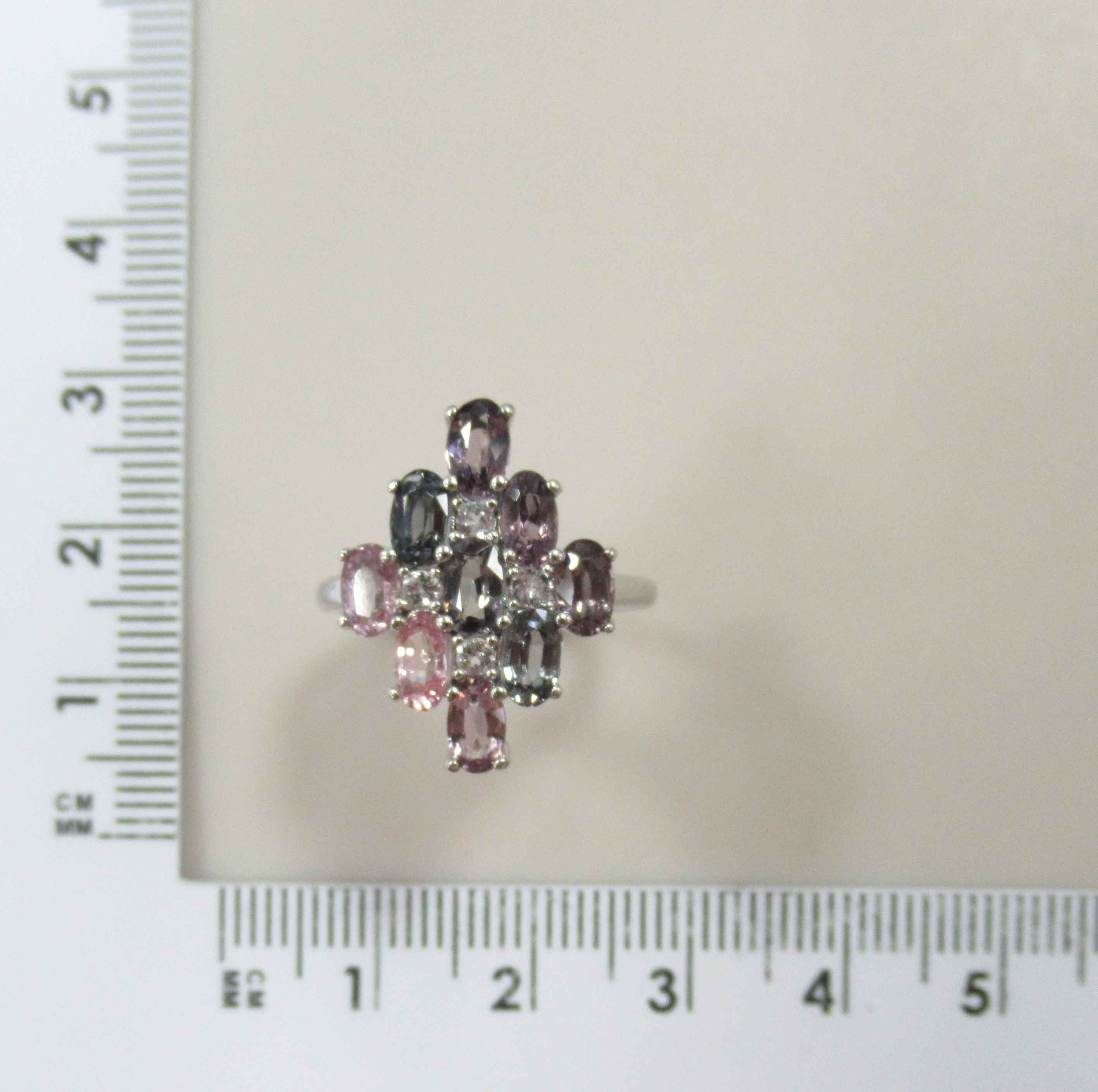 Серебряное кольцо с разноцветной шпинелью