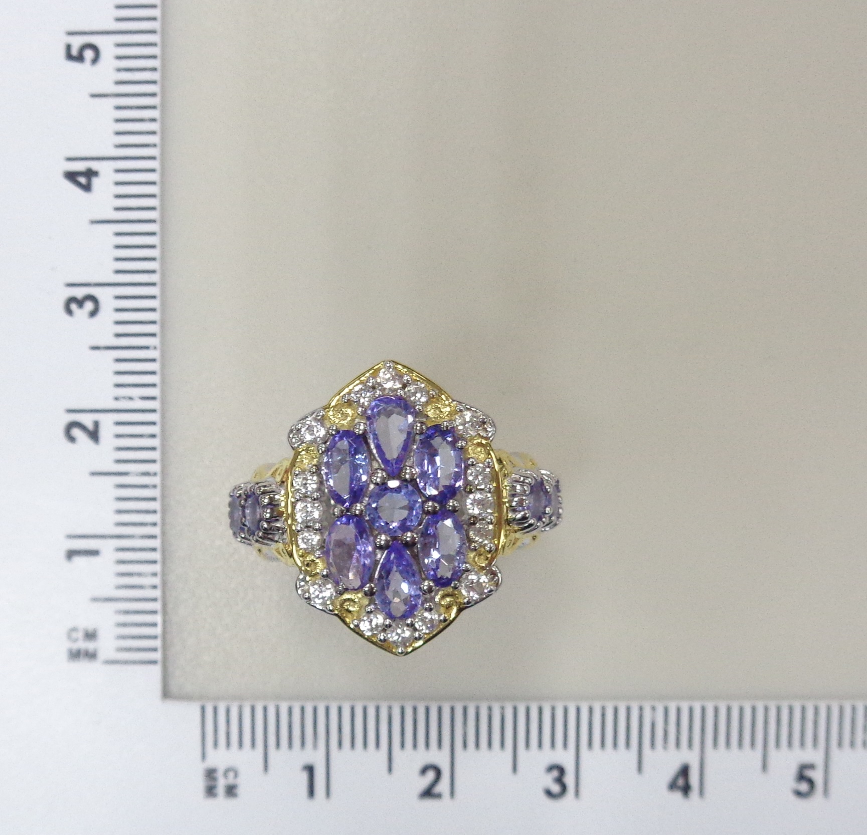 Кольцо из желтого золота с бриллиантами и сапфирами