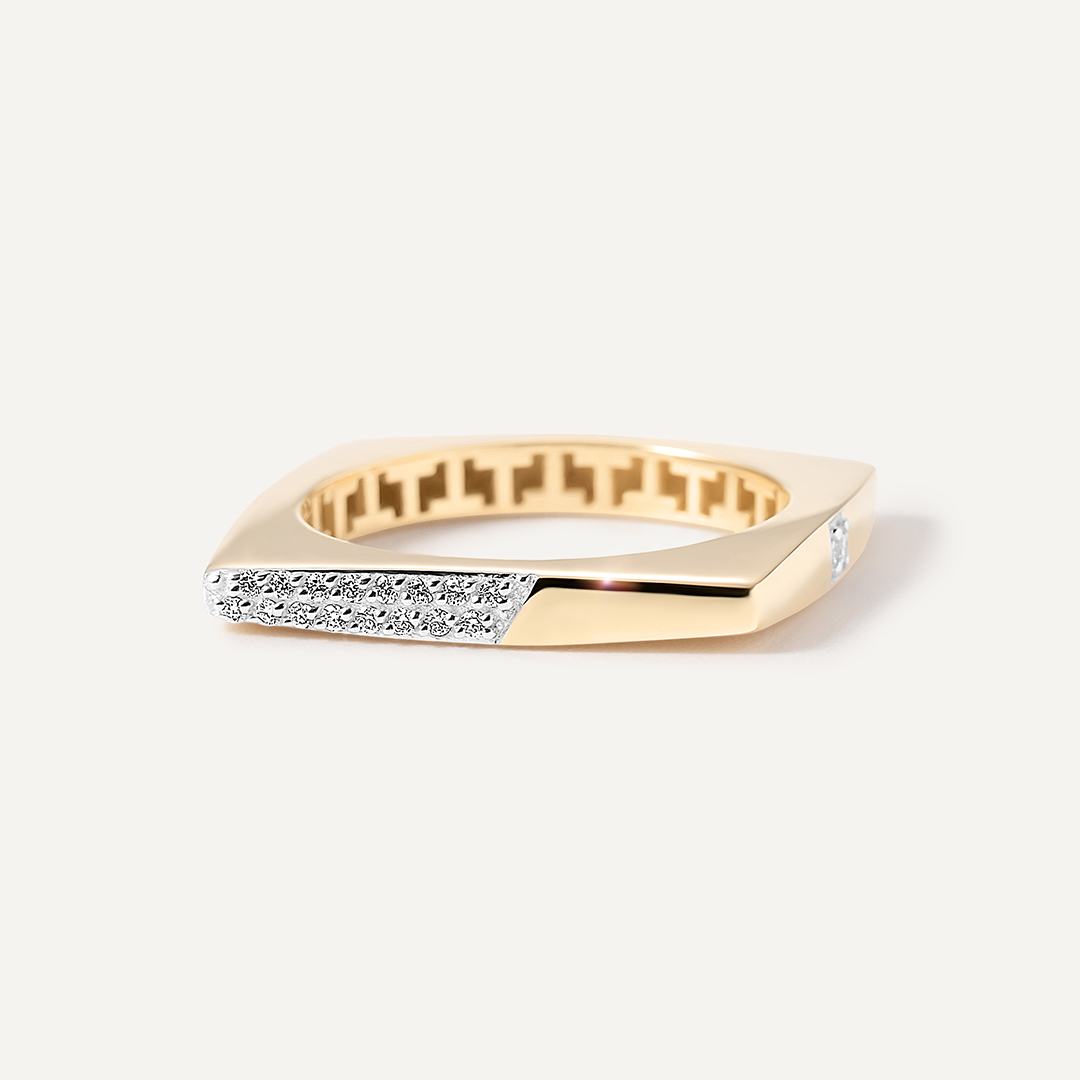 Кольцо из желтого золота с фианитами и эмалью "Бабочка"