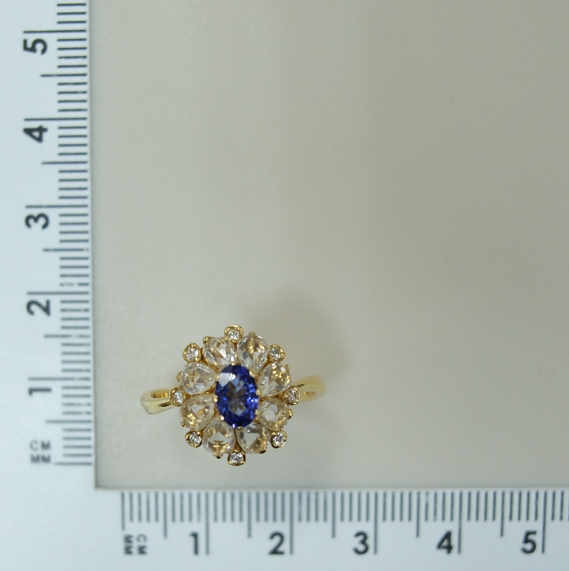 Кольцо из желтого золота с бриллиантами и сапфирами
