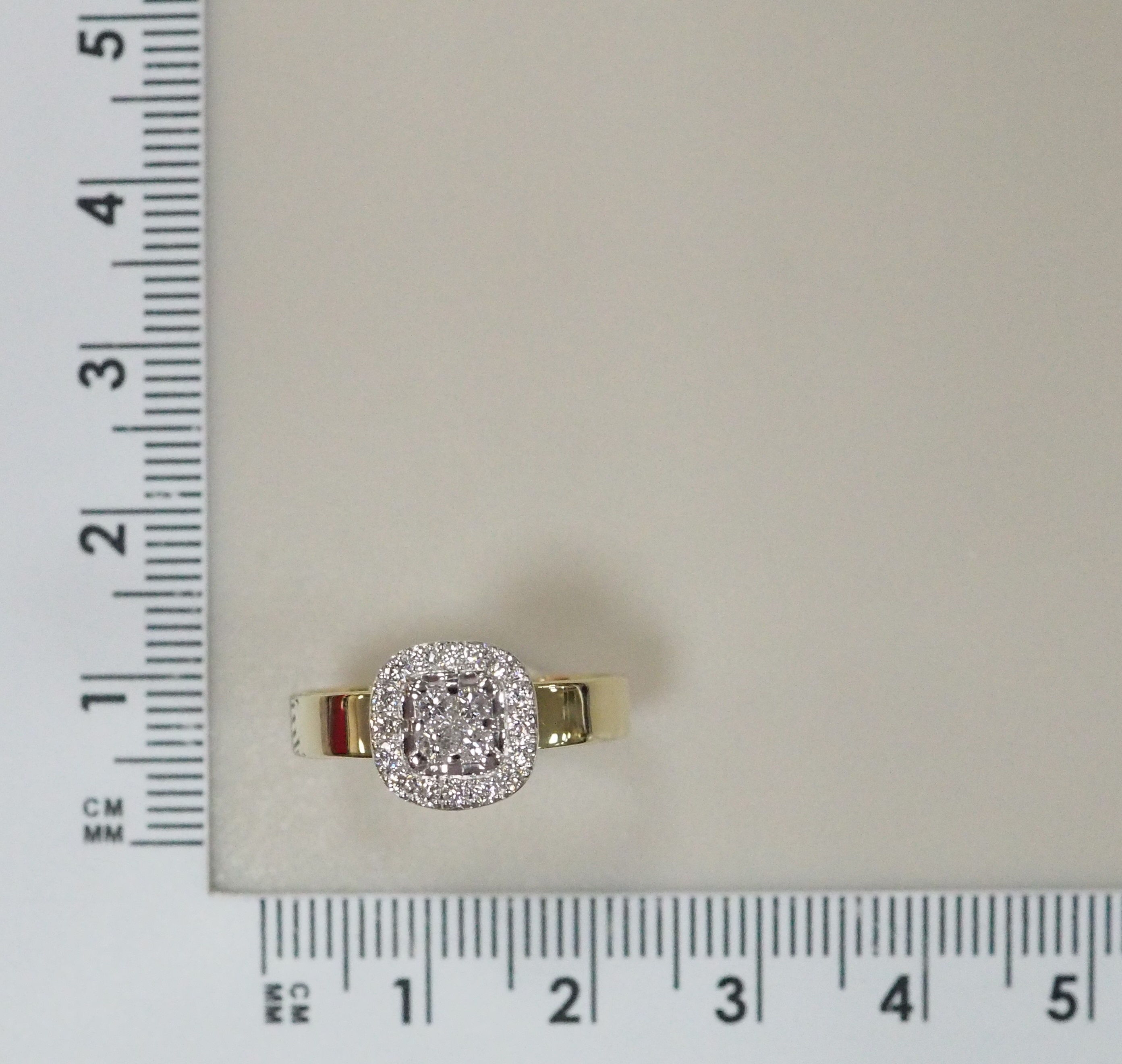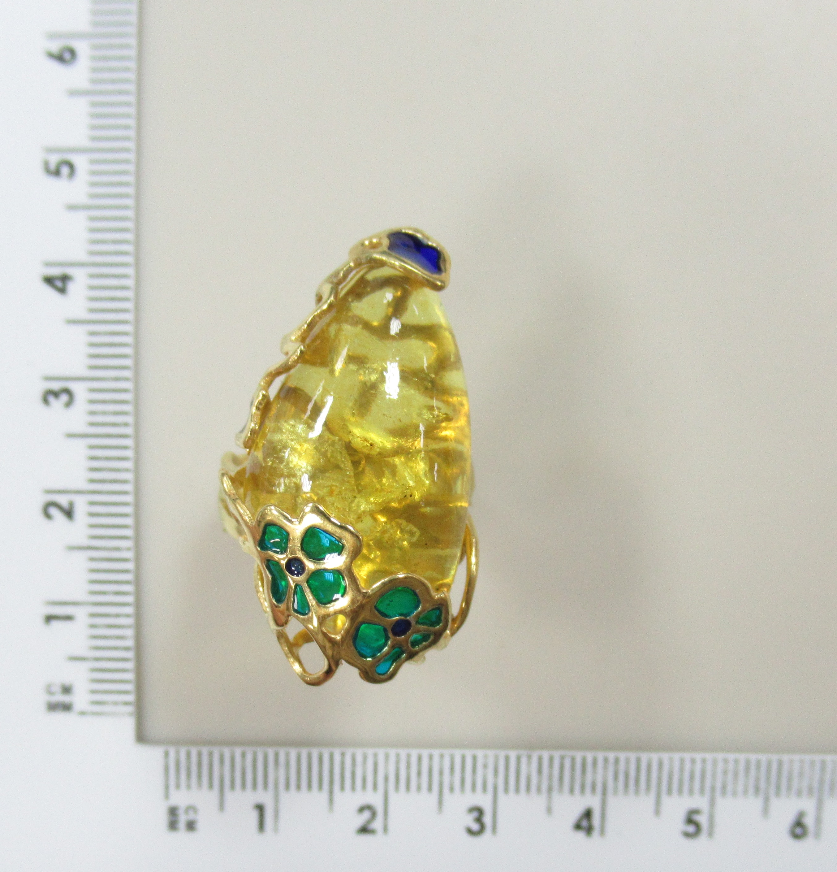 Золотое кольцо 585 пробы; желтое золото; родий; вставки 4 Сапфир облаг. оранж. 0,393; 32 Бр.Кр-57 0,