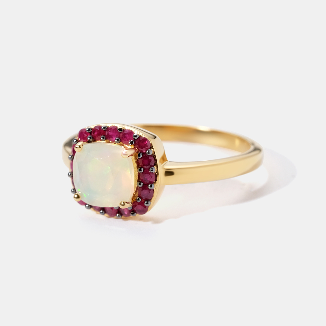 Серебряное кольцо с изумрудами и опалом "Цветок"