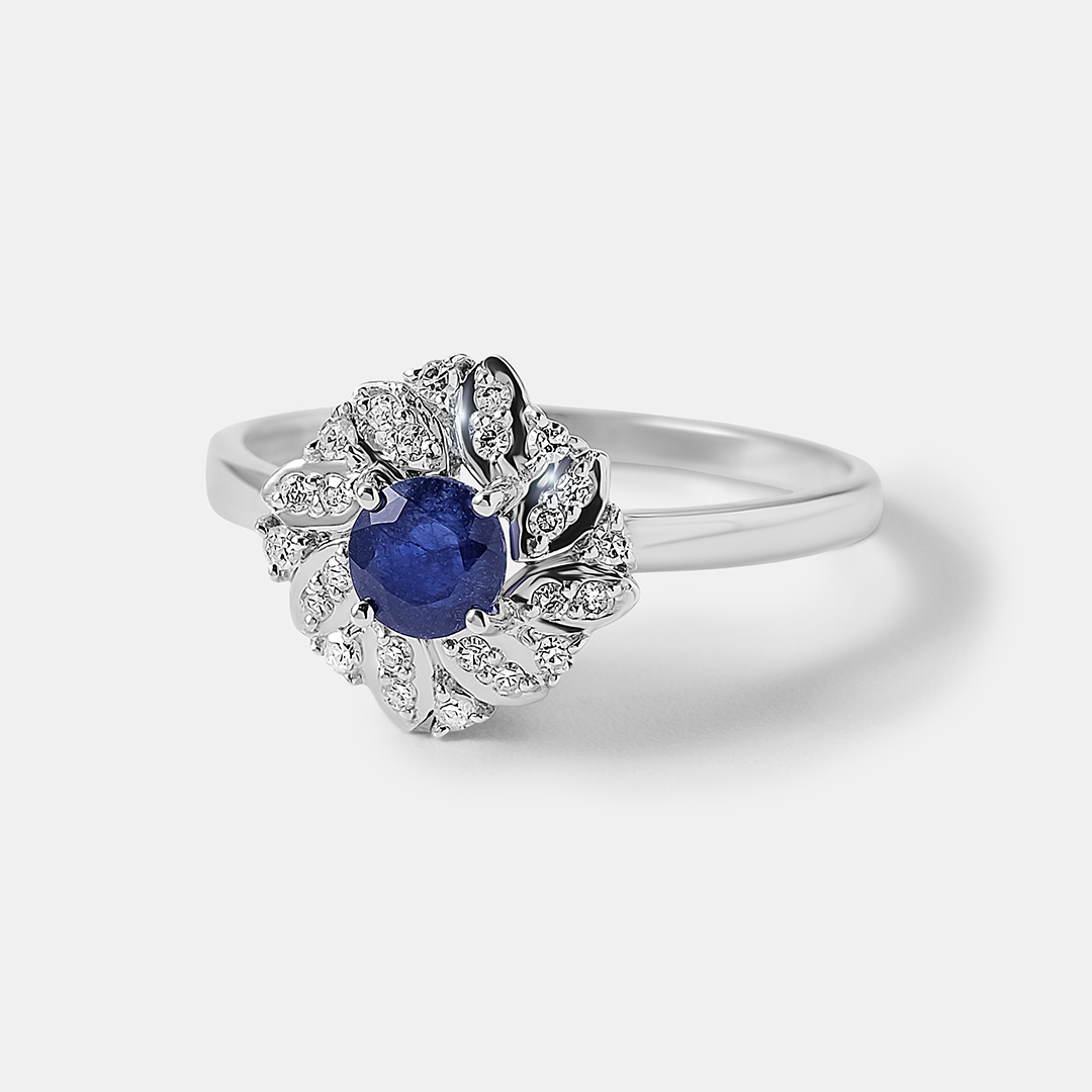 Кольцо из белого золота с сапфиром "Цветок"
