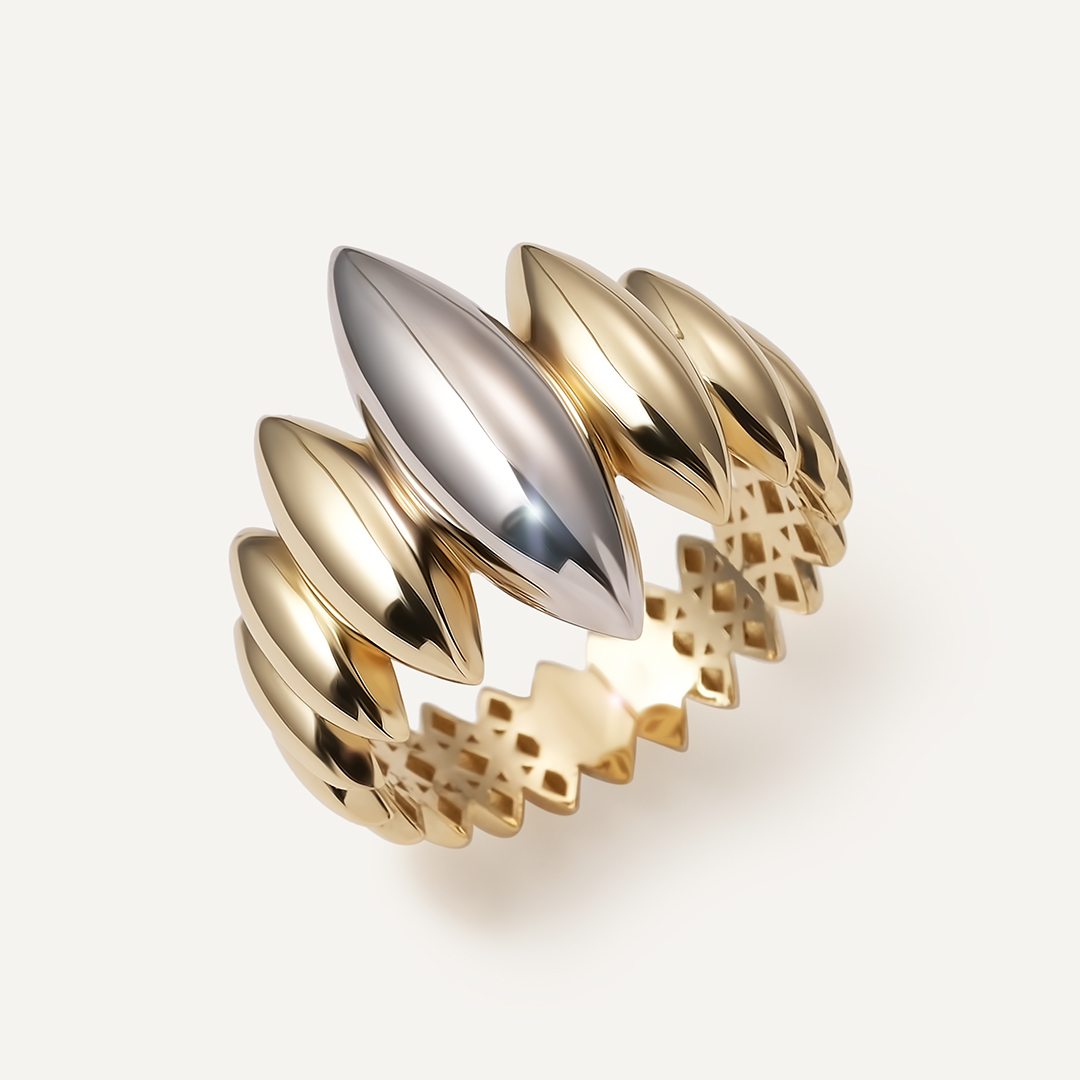 Кольцо из желтого золота с черными турмалинами и гранатами