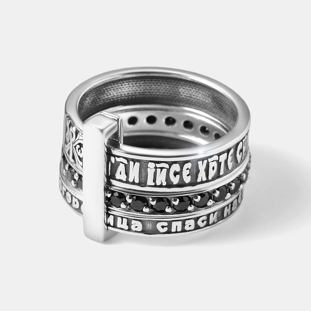 Серебряное кольцо со шпинелью "Иисусова молитва"