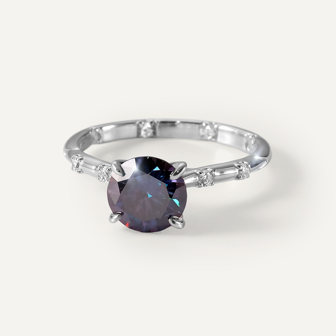 Серебряное кольцо-трансформер с фиолетовым муассанитом 2 в 1