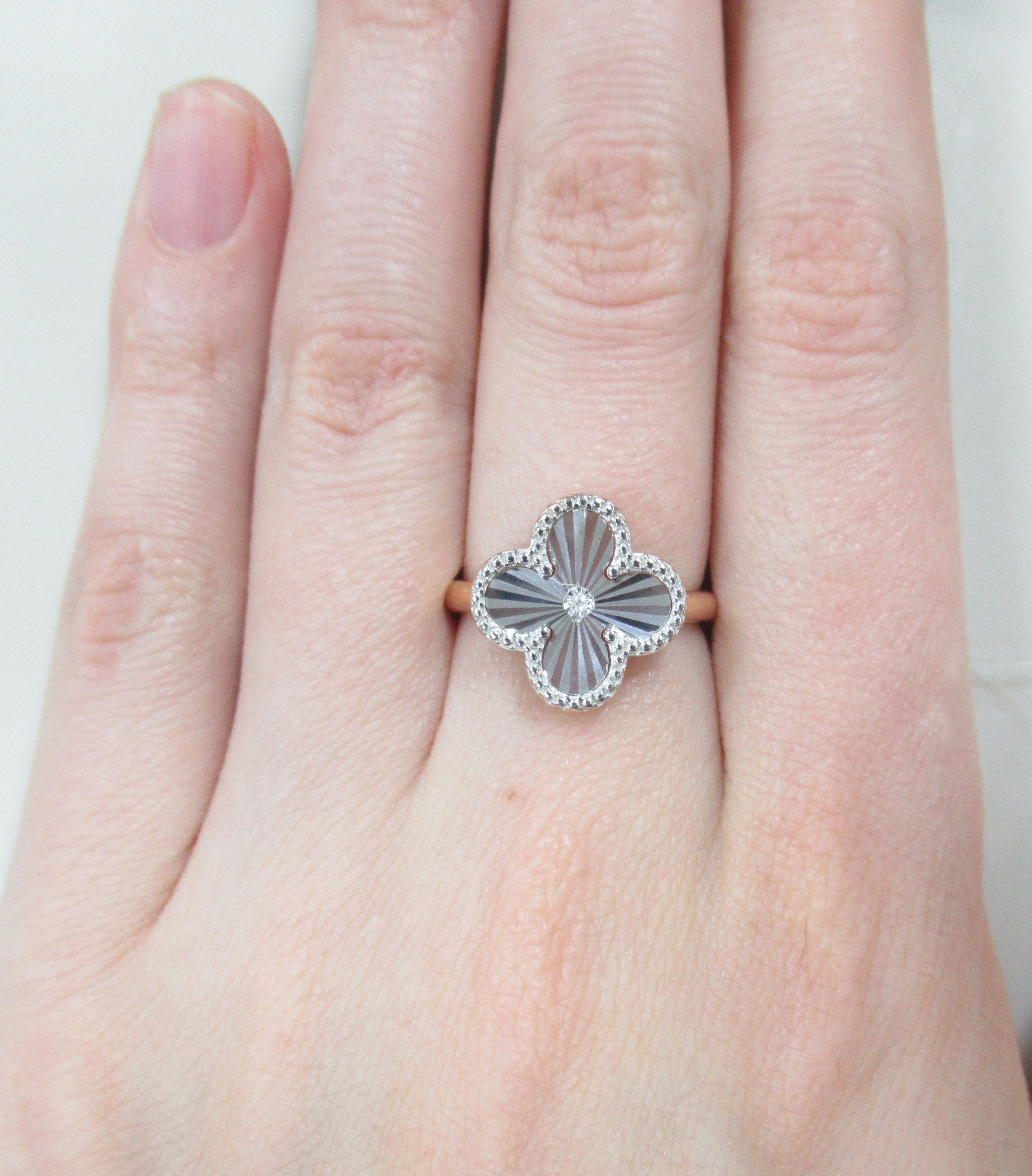 Серебряное кольцо с бриллиантом "Клевер"