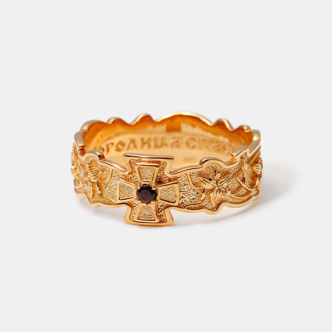 Серебряное кольцо с гранатом "Молитва Богородице"