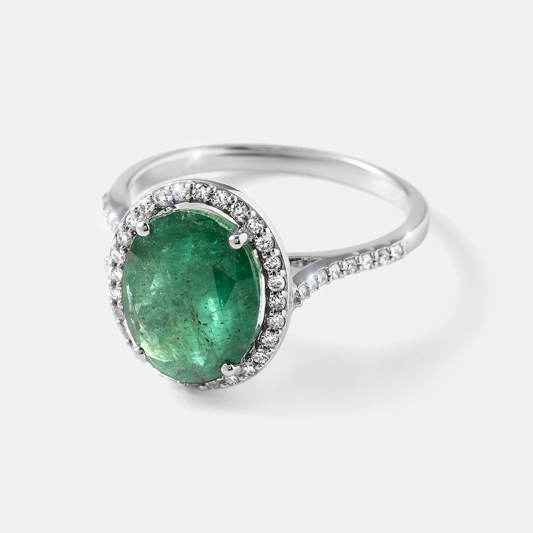 Серебряное кольцо с зеленым янтарем "Цветок"