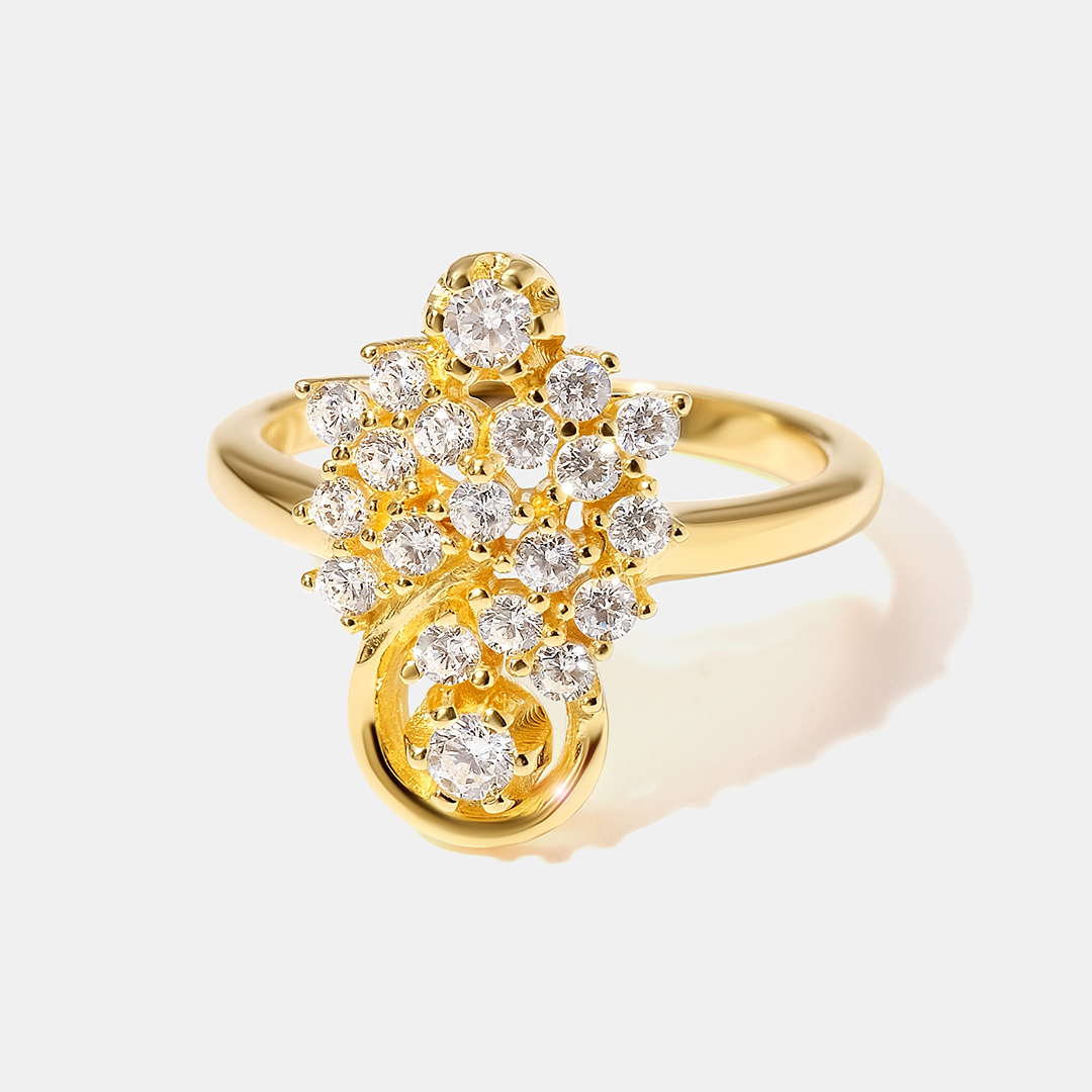 Серебряное кольцо с коньячными бриллиантами "Цветок"