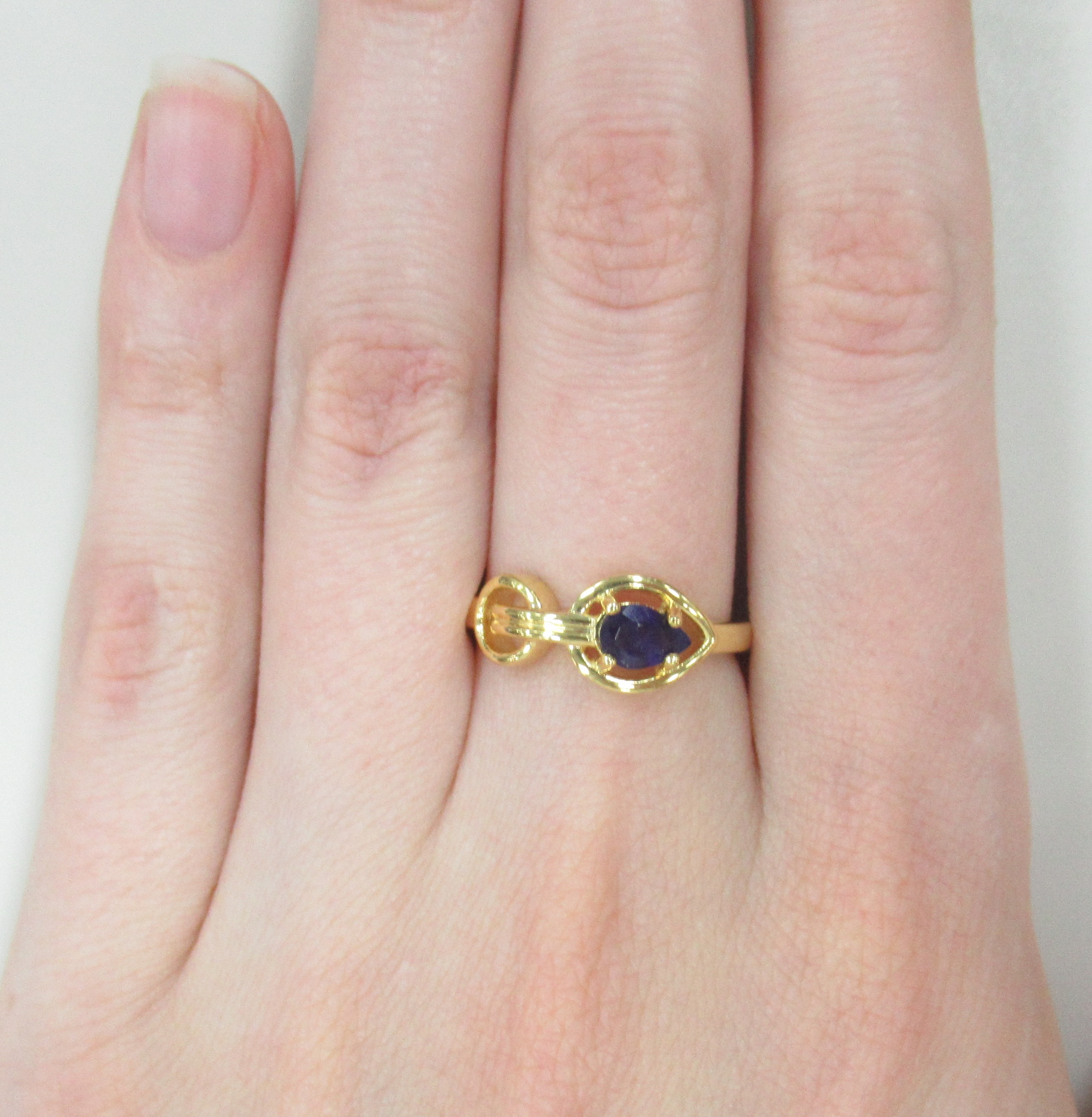 Золотое кольцо 585 пробы; белое золото; вставки 1 0,650 Корунд синт. цвет Сапфир ; 12 Бр.Кр-17 0,03