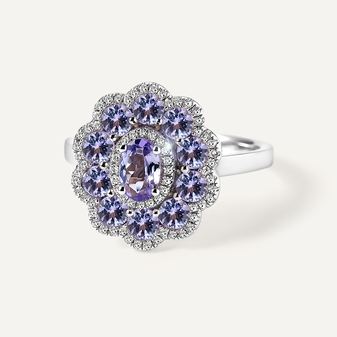 Кольцо из белого золота с танзанитами