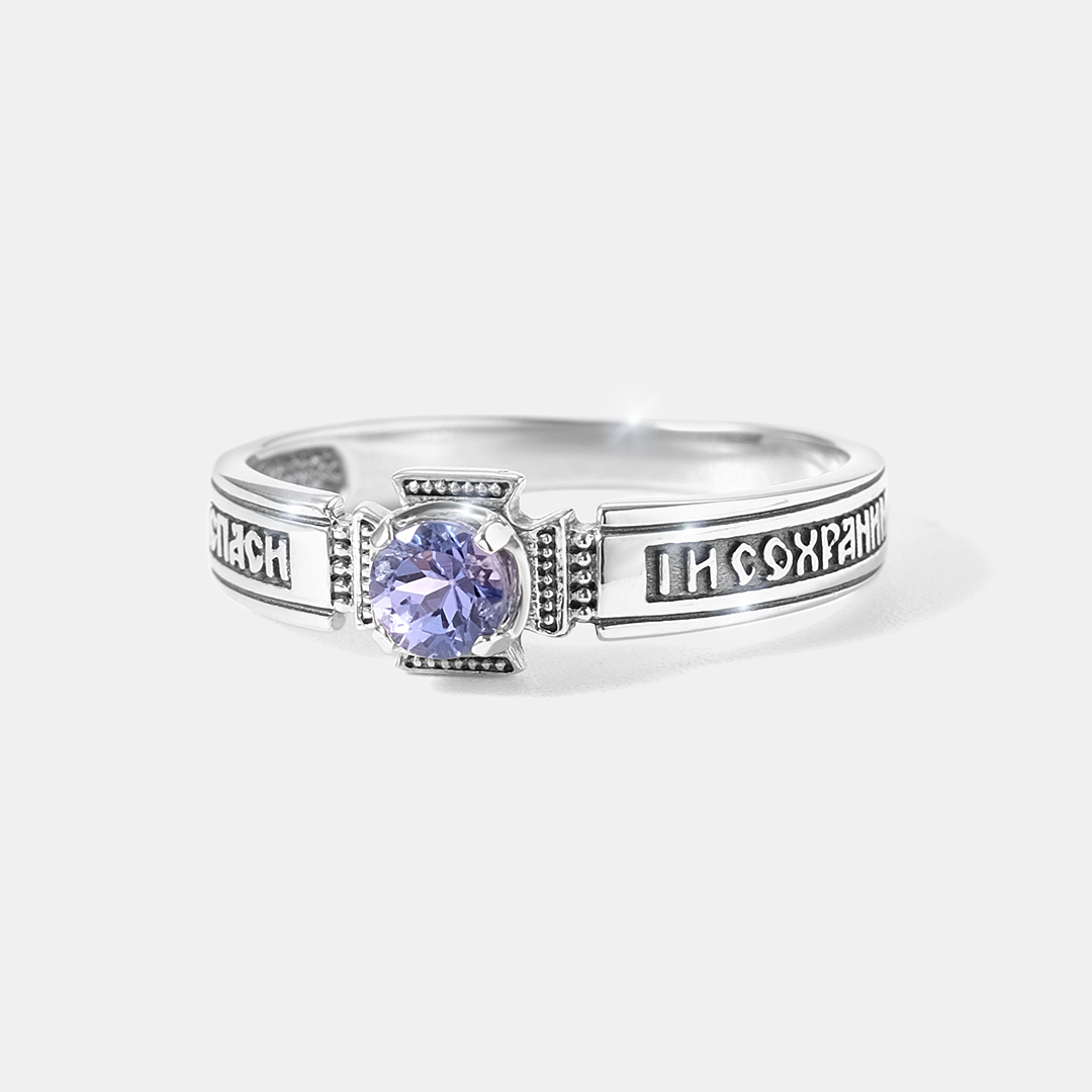 Серебряное кольцо с танзанитом "Спаси и Сохрани"
