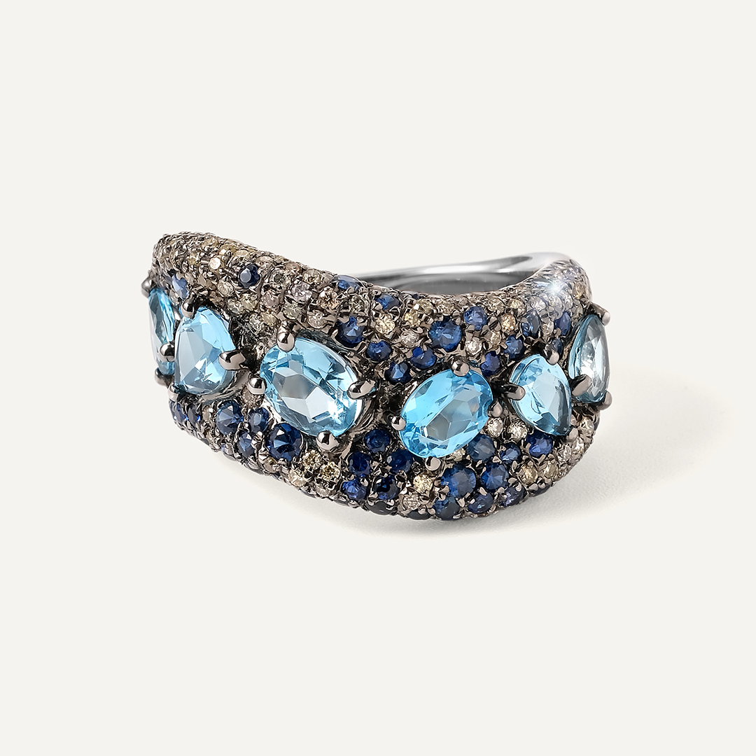 Серебряное кольцо-трансформер с танзанитом и топазом