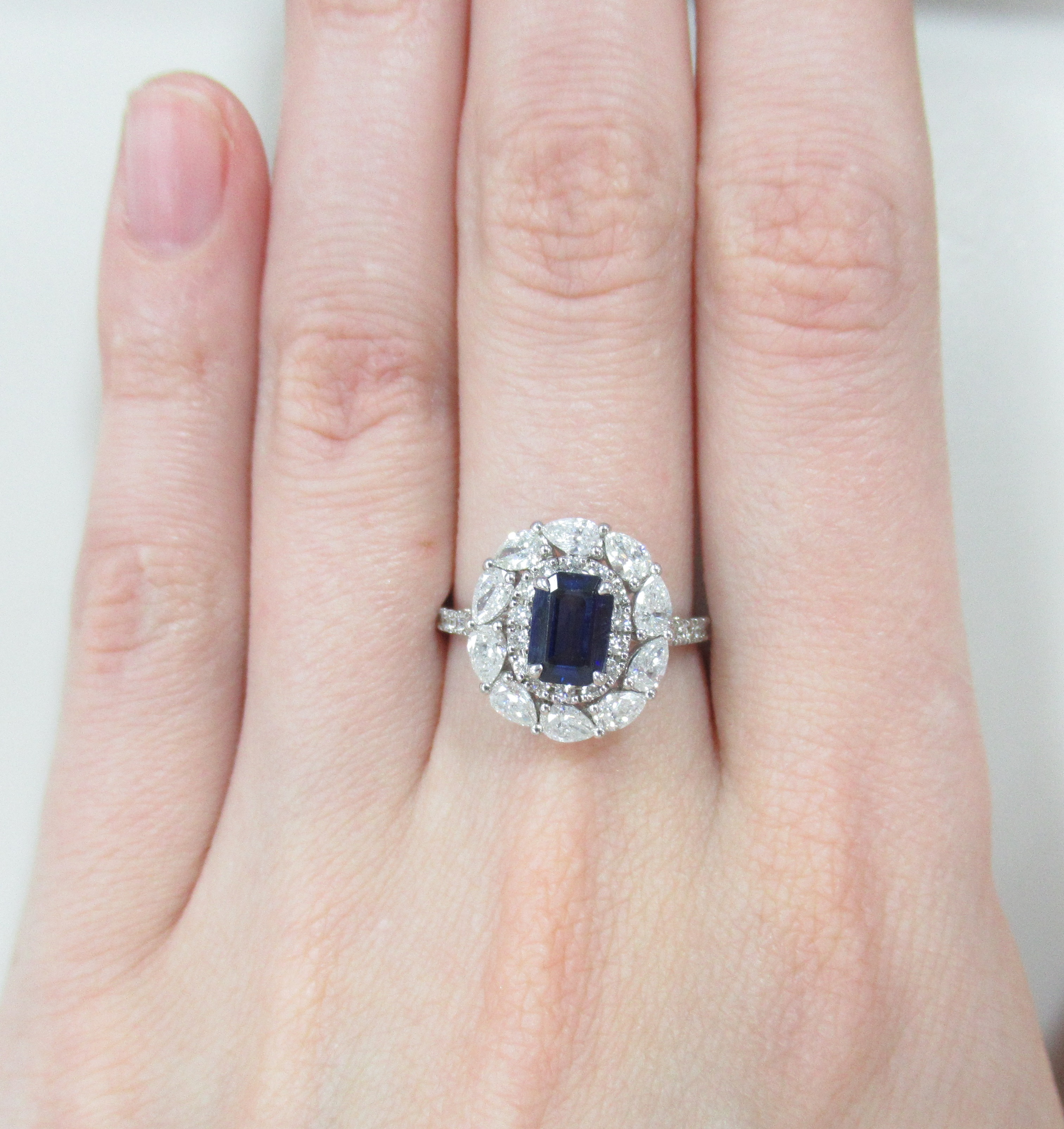 Кольцо-трансформер из белого золота с сапфиром и бриллиантами "Цветок"