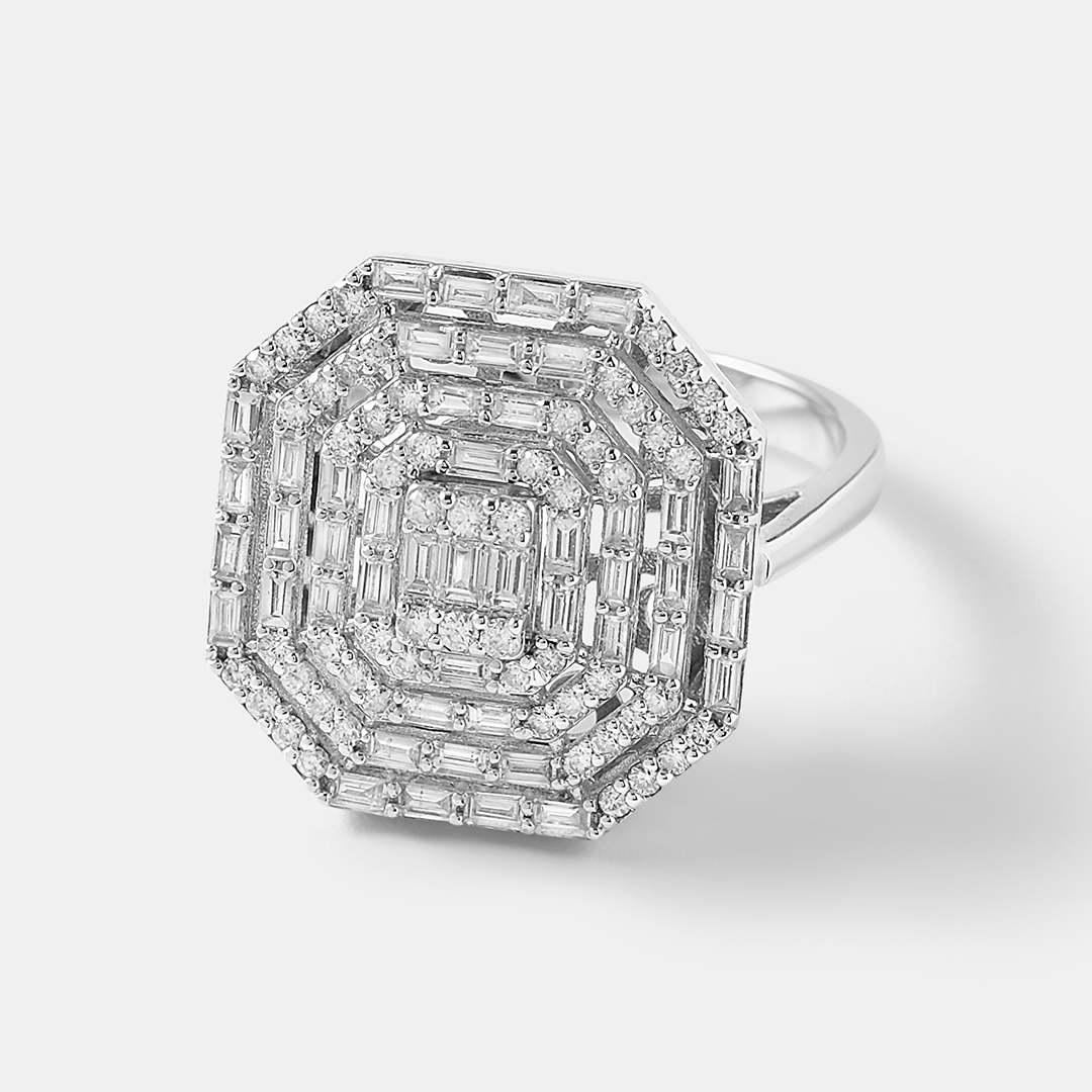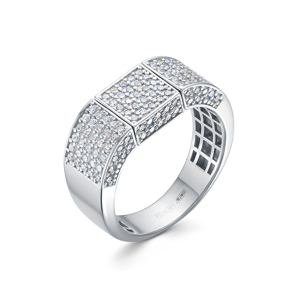 Золотое кольцо 585 пробы; белое золото; родий; вставки 46 Фианит бесцв.;