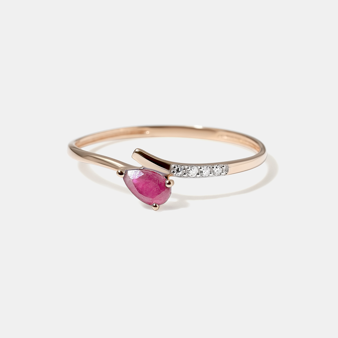Серебряное незамкнутое кольцо с рубинами "Змея"