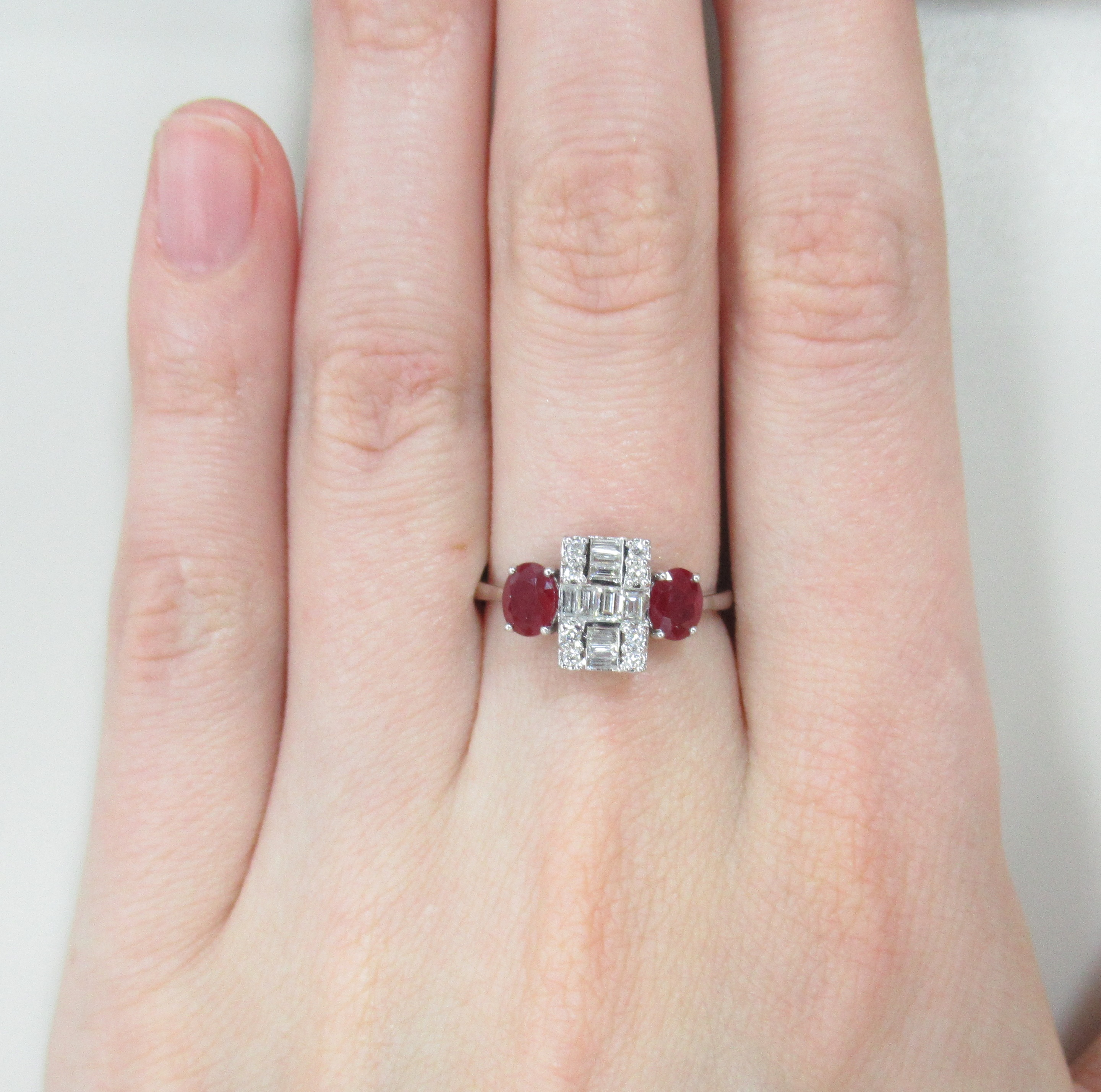 Кольцо из золота с рубином и бриллиантом "Крестики"