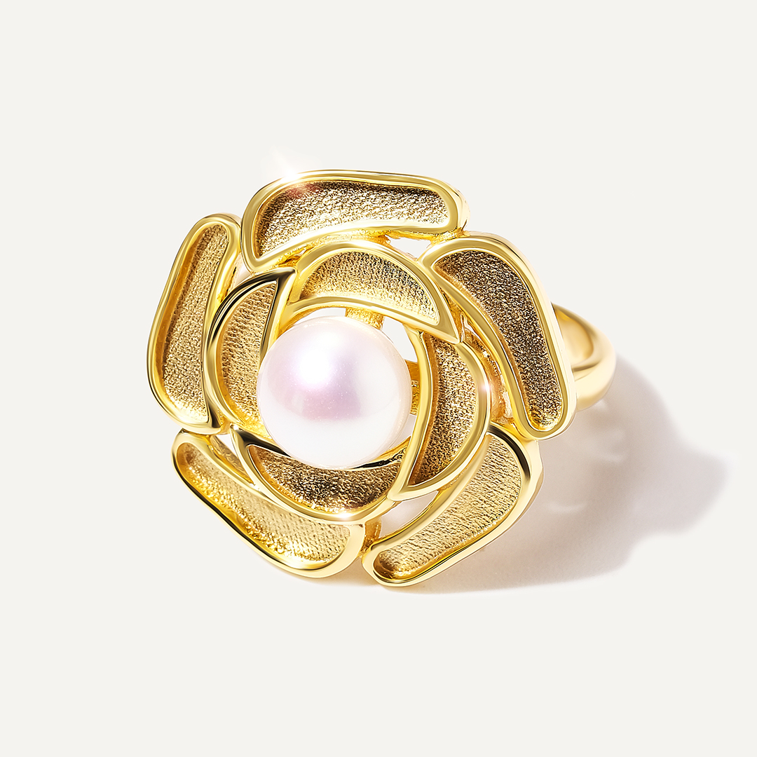 Кольцо из желтого золота с жемчугом Акойя "MARU"