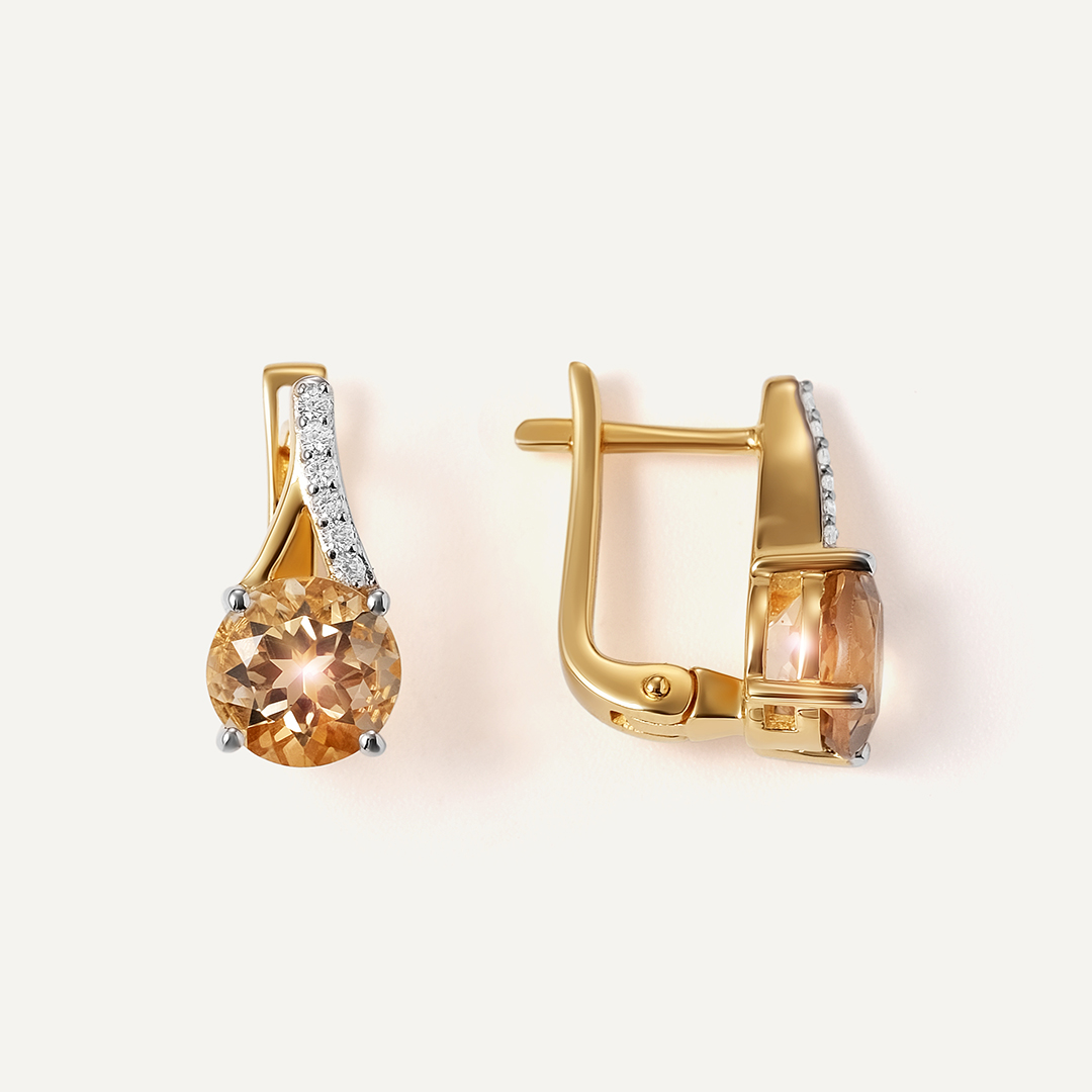 Серьги-пусеты из комбинированного золота с бриллиа...