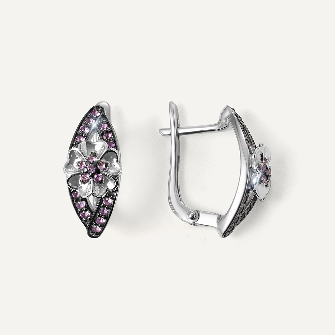 Серебряные серьги с бриллиантами "Танцующий камень"