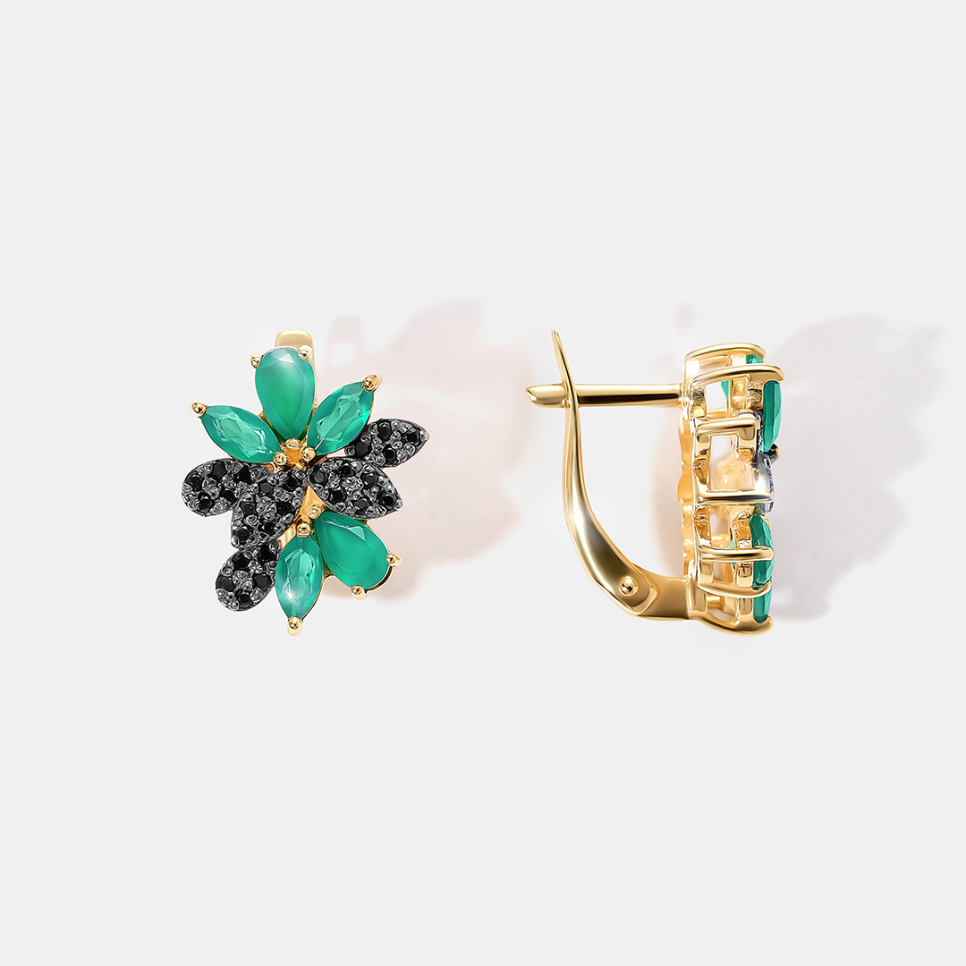 Серьги из желтого золота с коньячными и черными бриллиантами