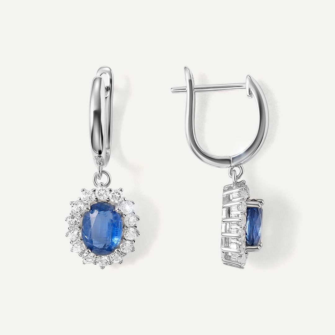 Серьги-пусеты из желтого золота с голубыми бриллиантами