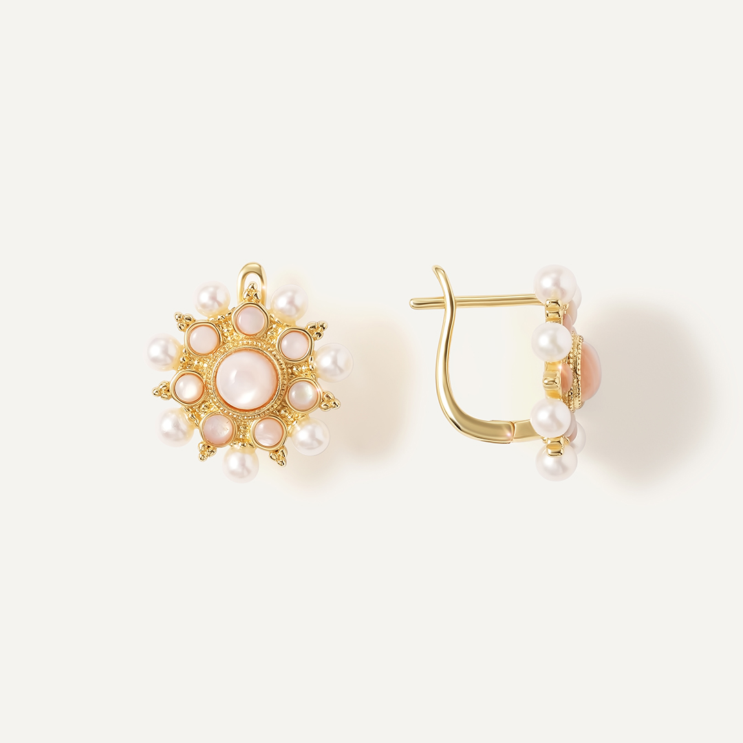 Серьги-пусеты из золота с розовым жемчугом