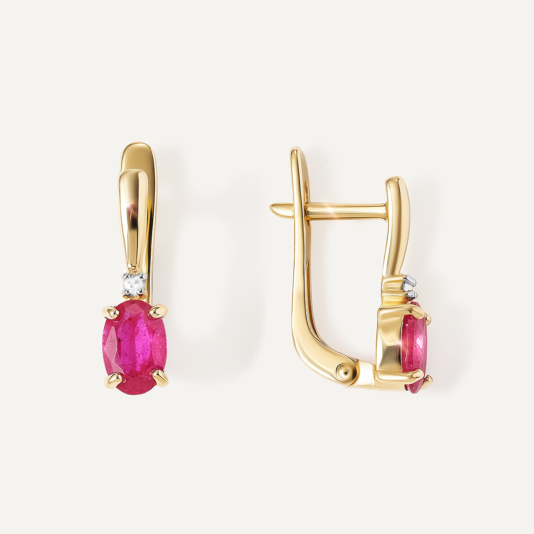 Серьги из желтого золота с рубинами