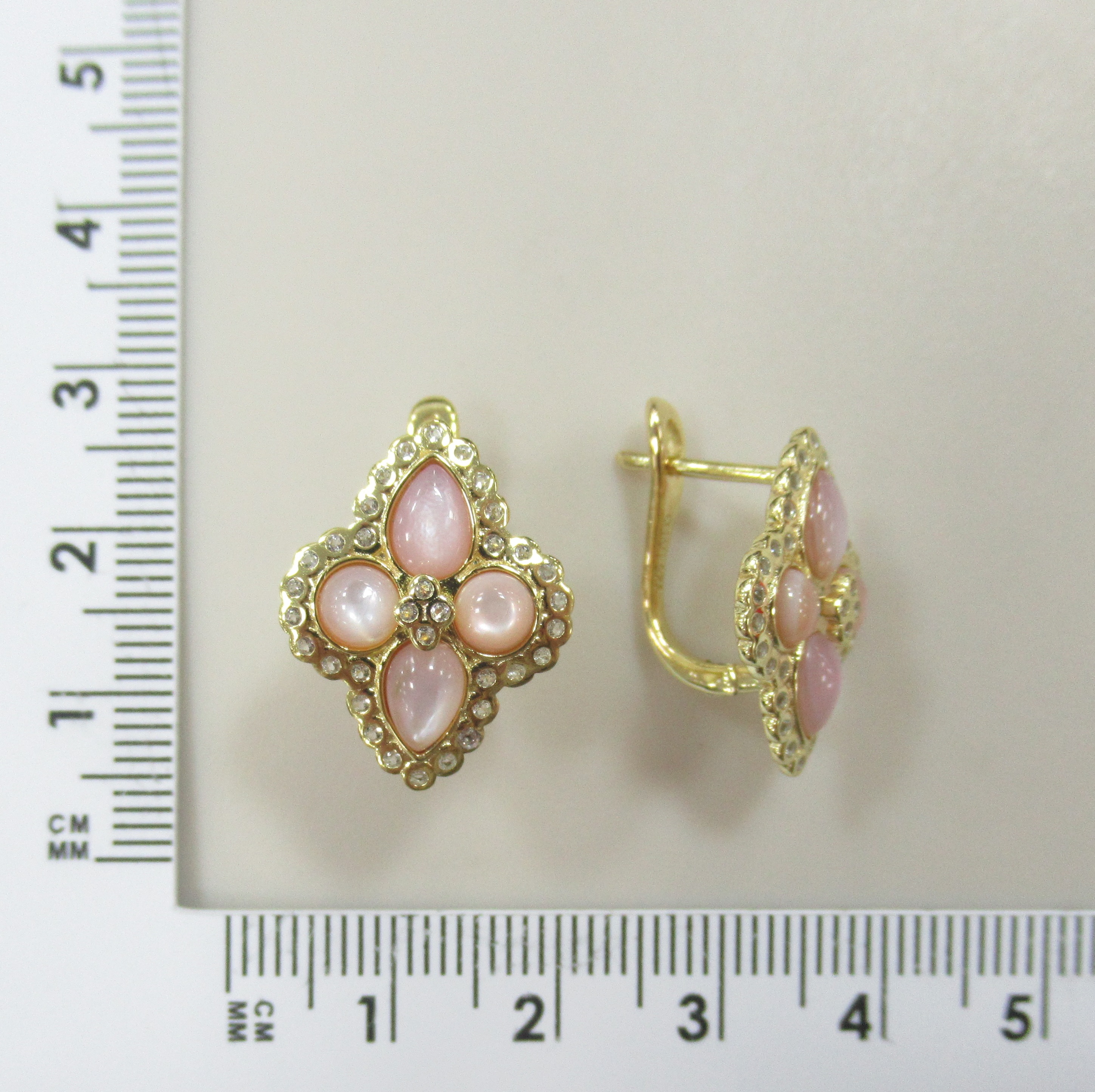Серьги из золота с перламутром "Клевер"