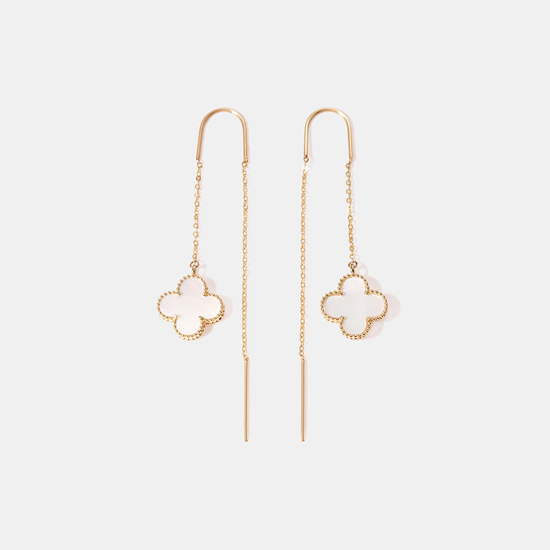 Серьги-протяжки из желтого золота с перламутром "Клевер"