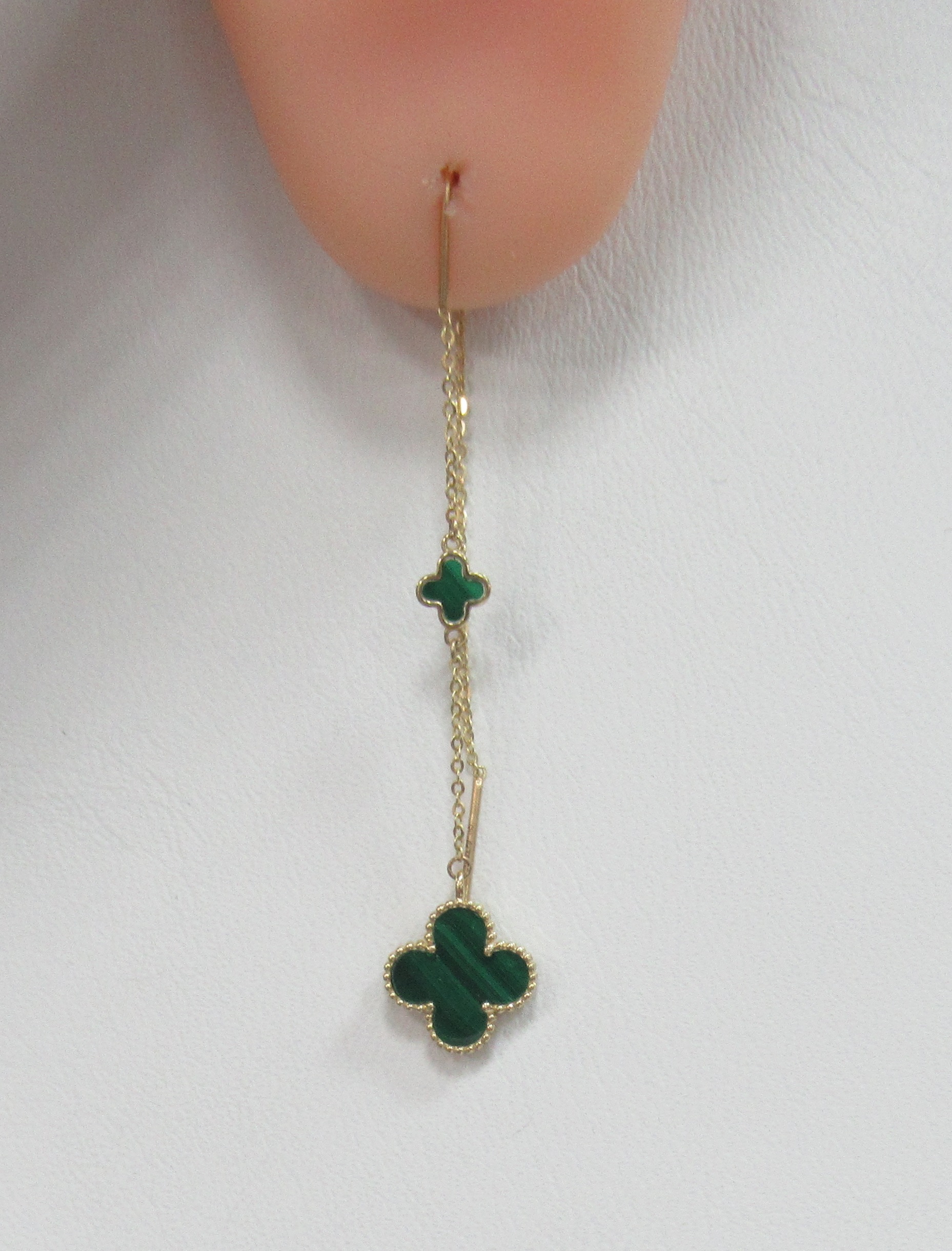 Серьги-протяжки из желтого золота с малахитами "Клевер"