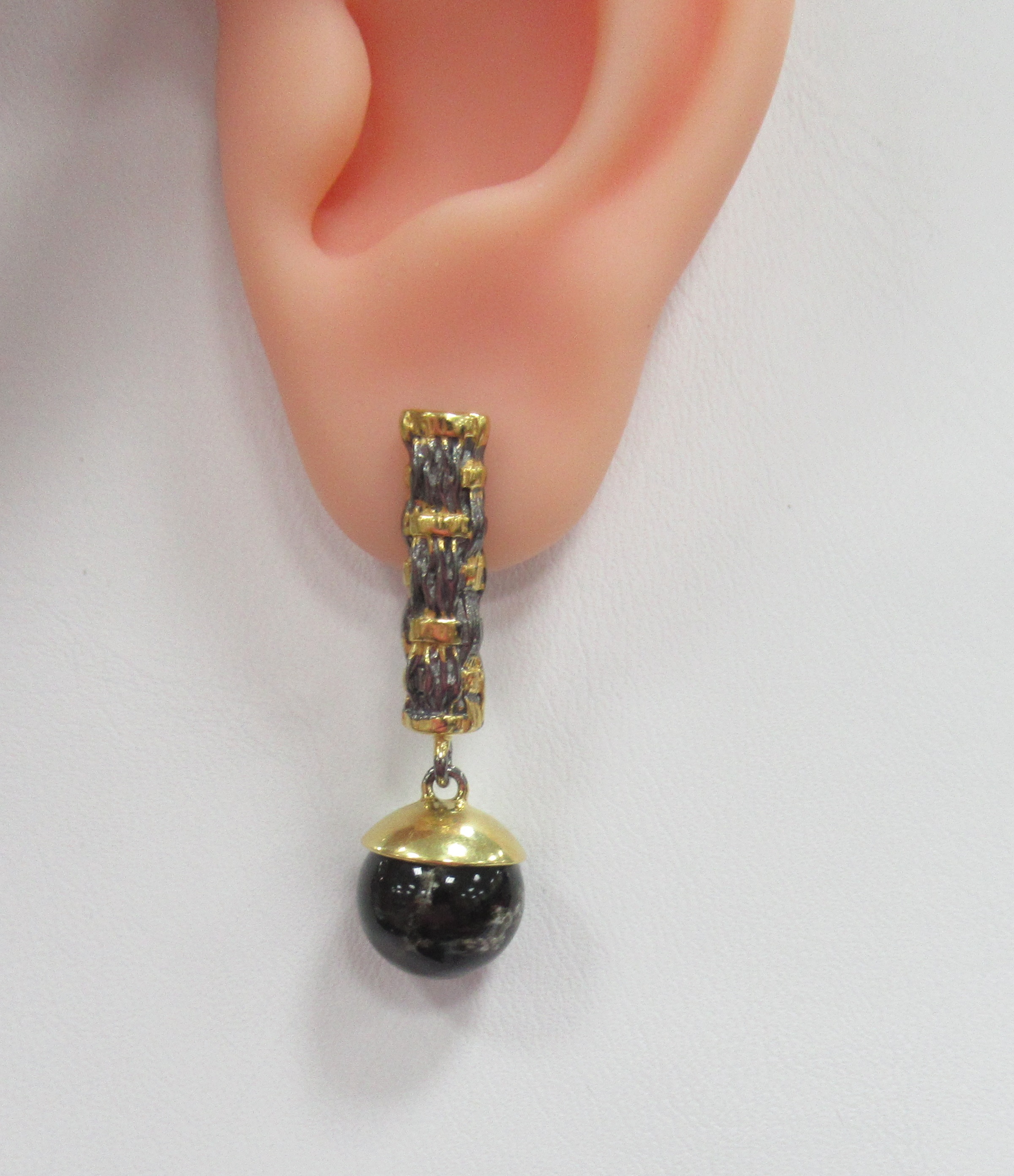 Серьги из желтого золота с черными бриллиантами