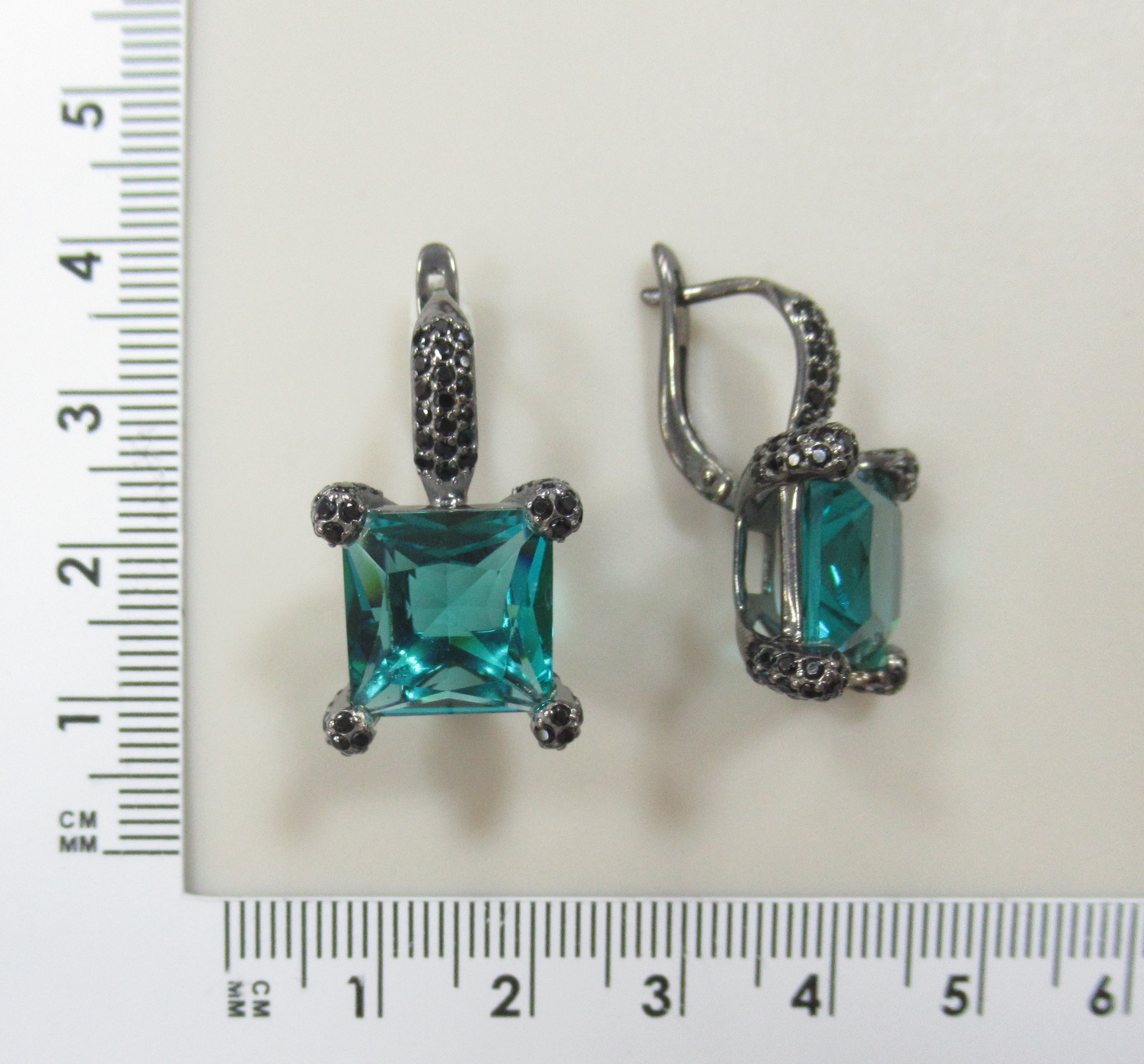 Серебряные серьги с ювелирным стеклом и шпинелью