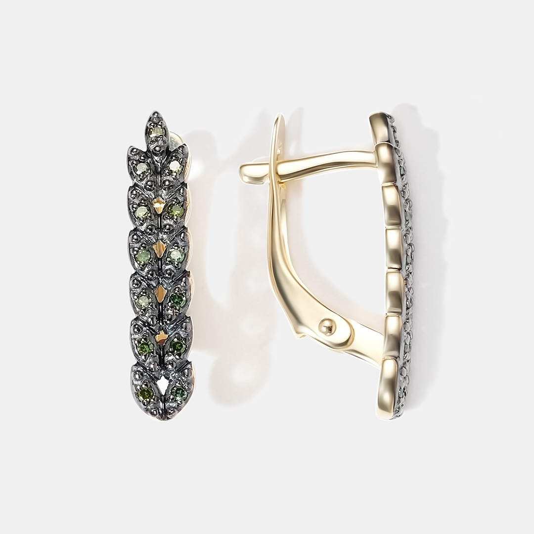Серьги-пусеты из желтого золота с изумрудами и бриллиантами