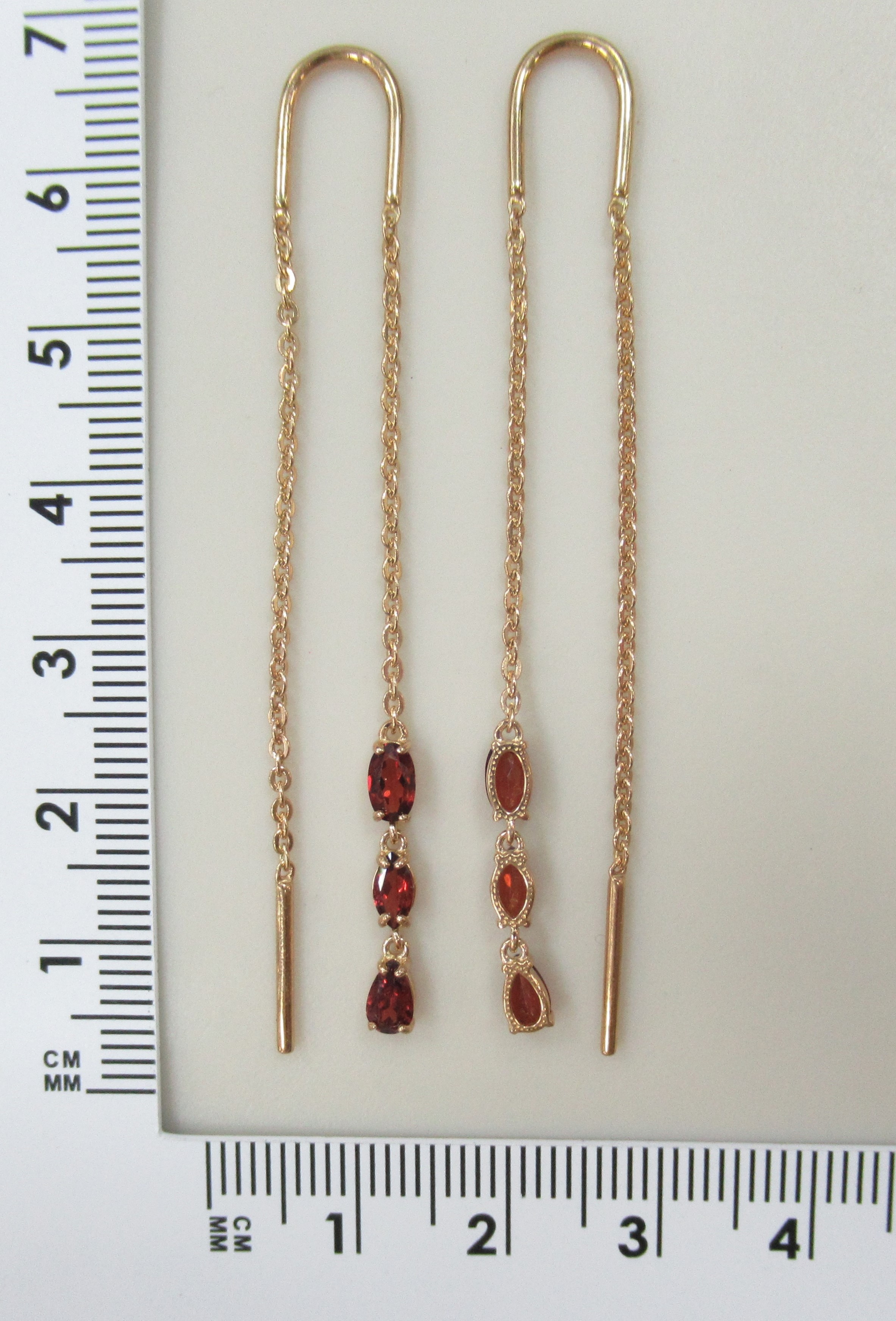 Серебряные серьги-протяжки с гранатами Мозамбик