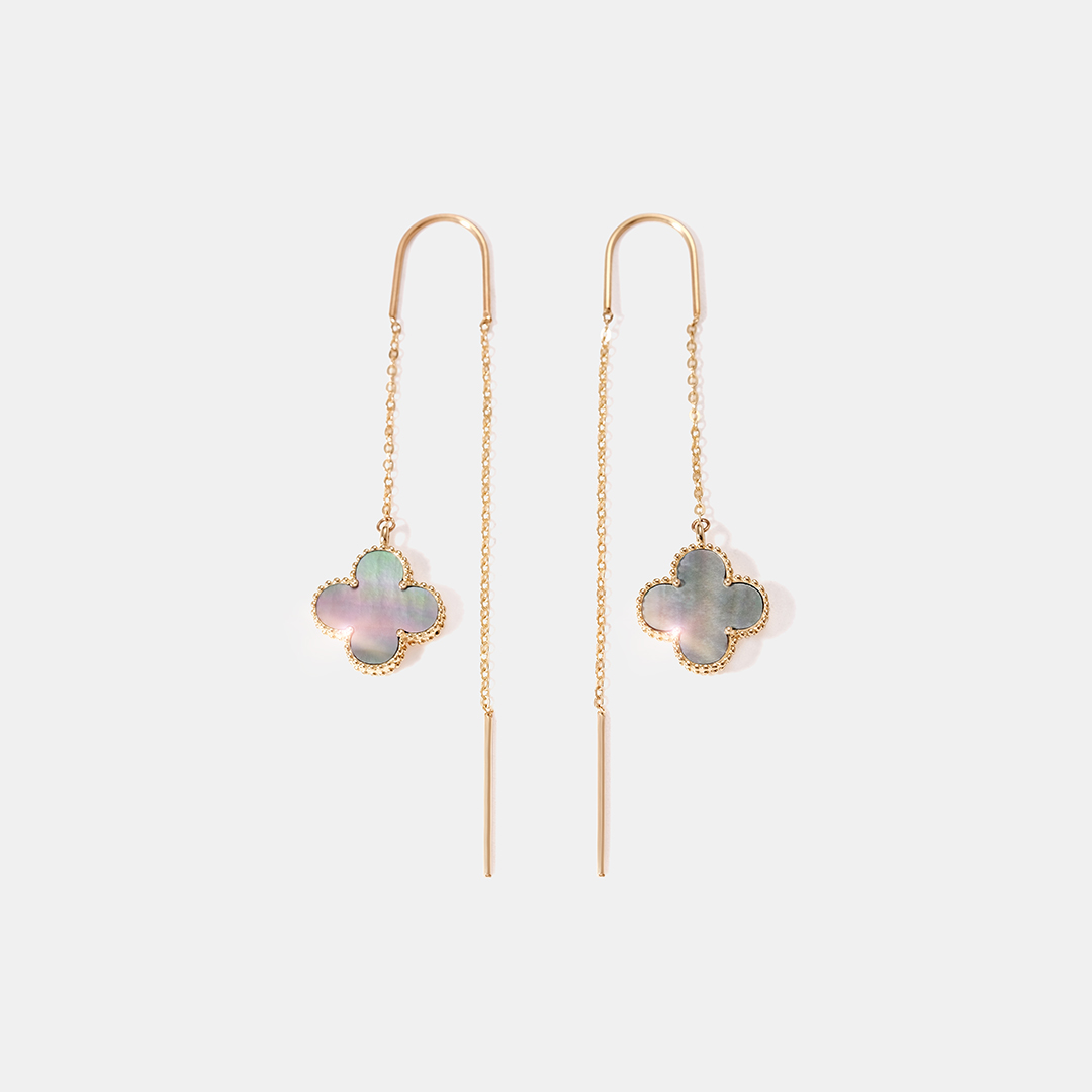 Серьги-протяжки из желтого золота с перламутром "Клевер"