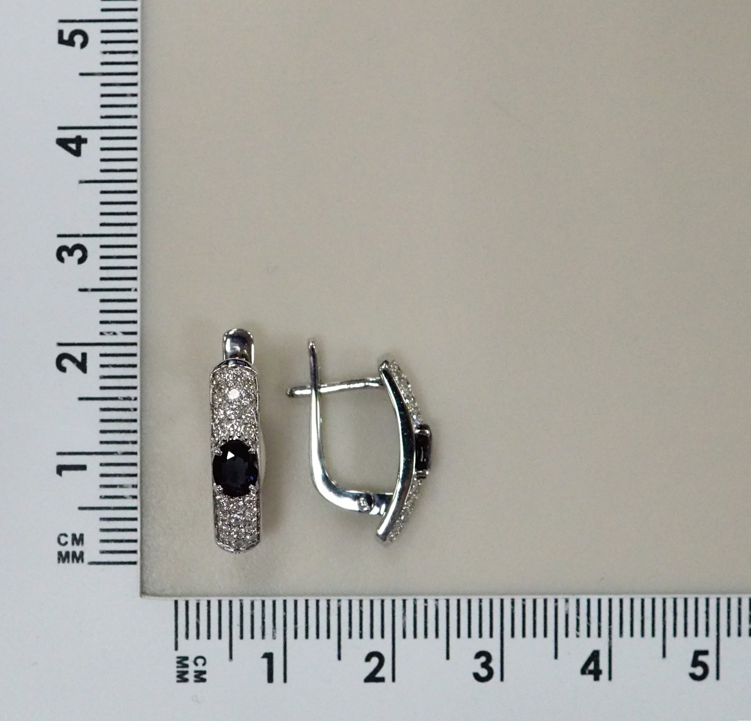 Серьги из белого золота с сапфиром и черным бриллиантом