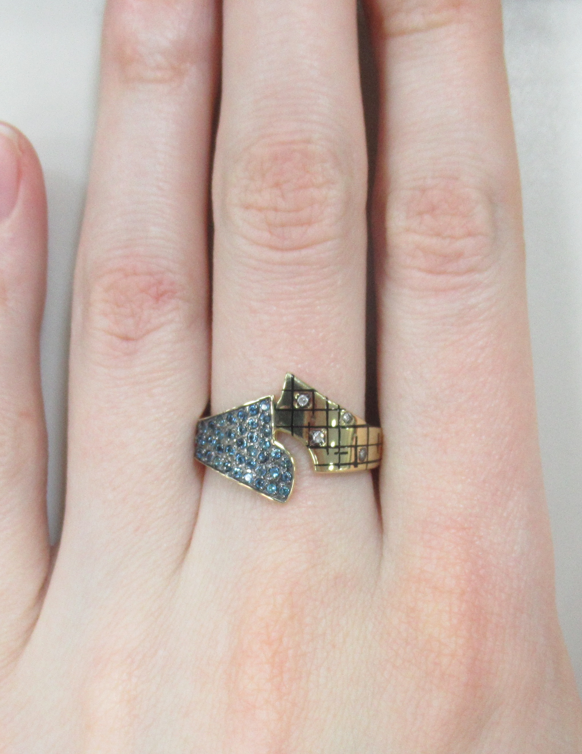 Кольцо из белого золота с голубыми бриллиантами