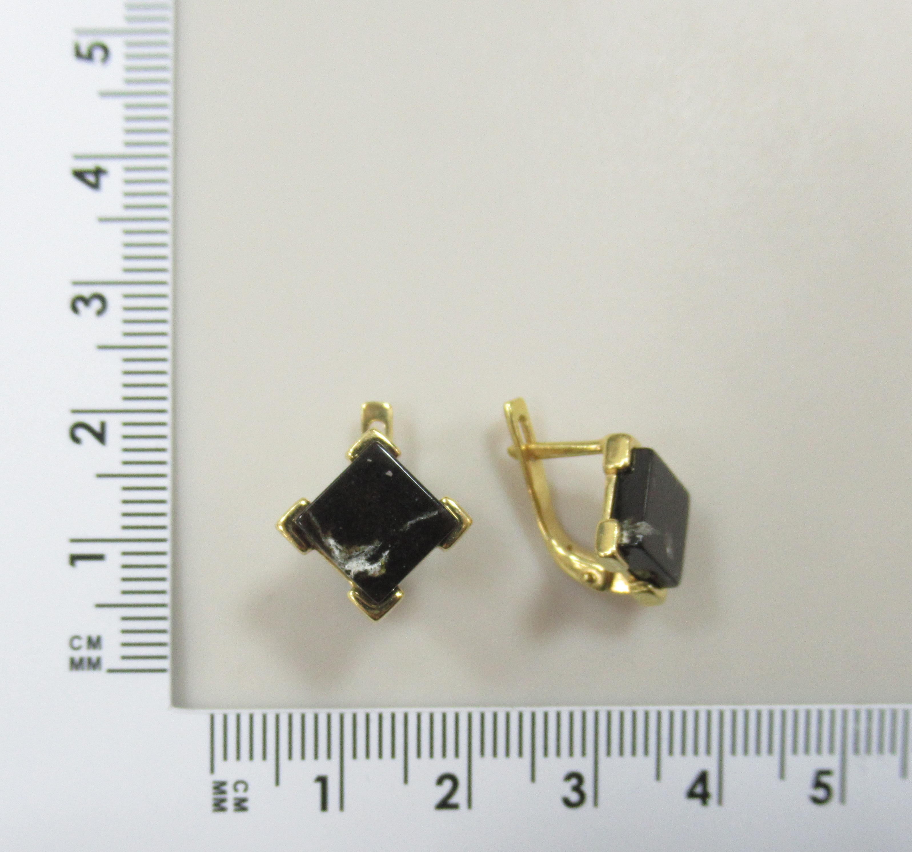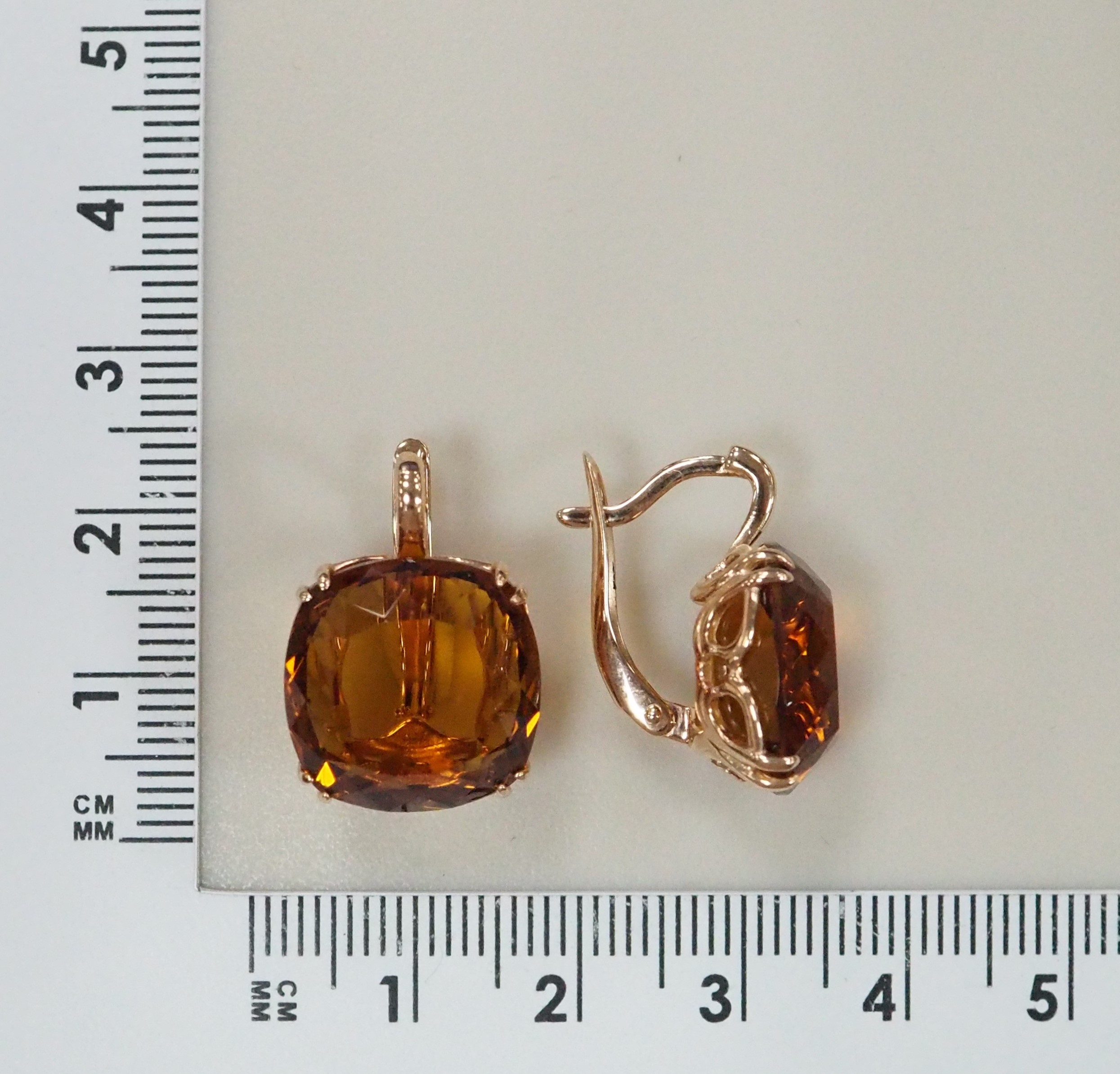 Серьги-пусеты из желтого золота с коньячными бриллиантами