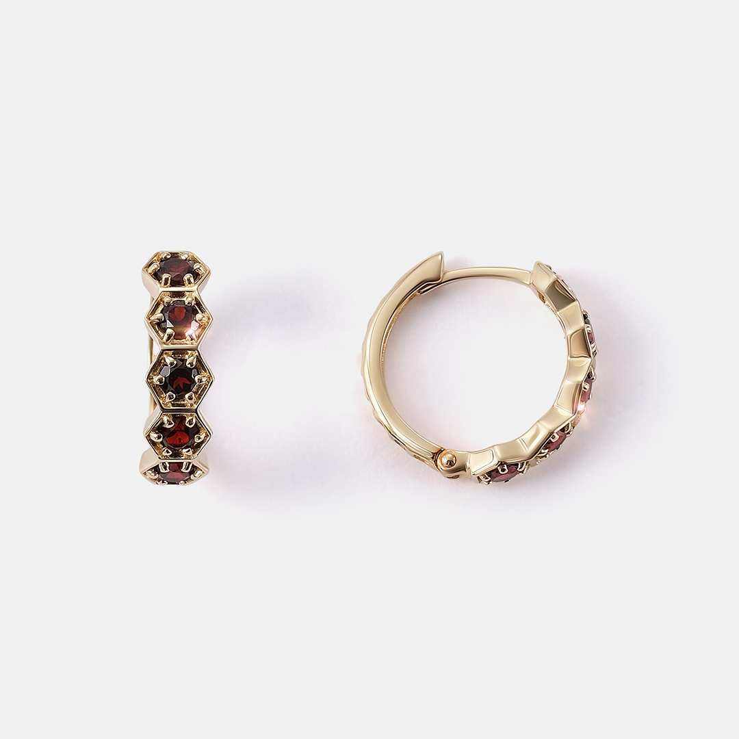 Серьги-конго из желтого золота с гранатами
