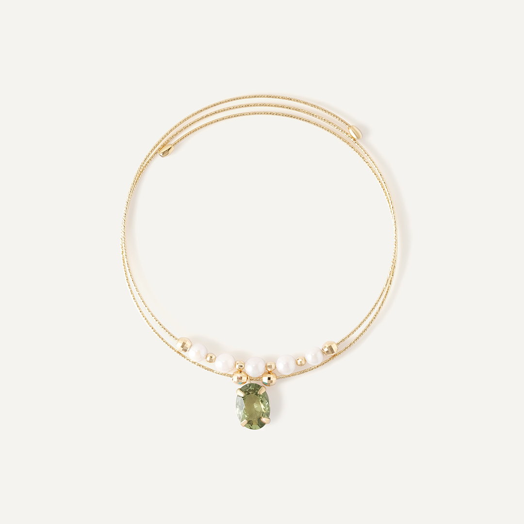 Браслет из желтого золота с мультисапфиром и жемчугом Акойя