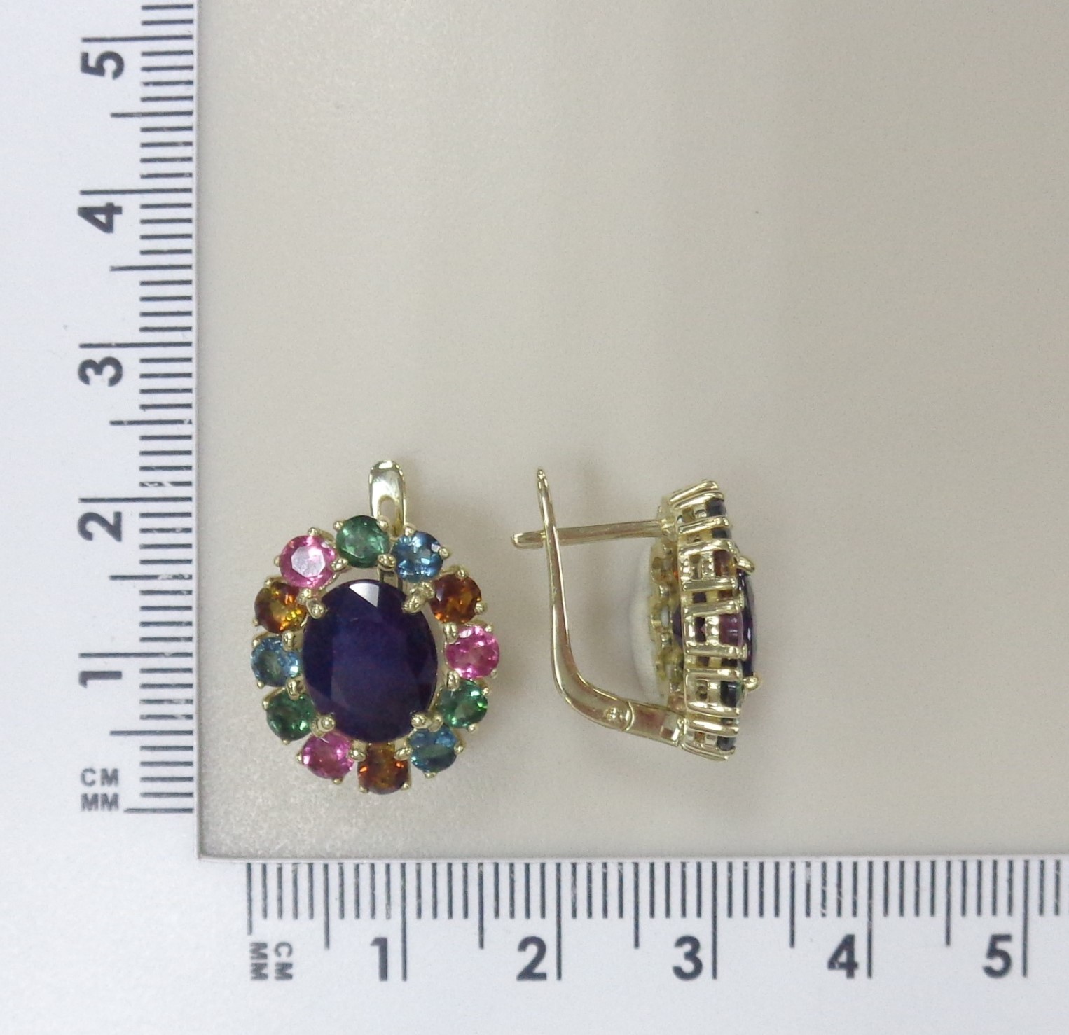 Серебряные серьги с изумрудами, сапфирами и рубина...