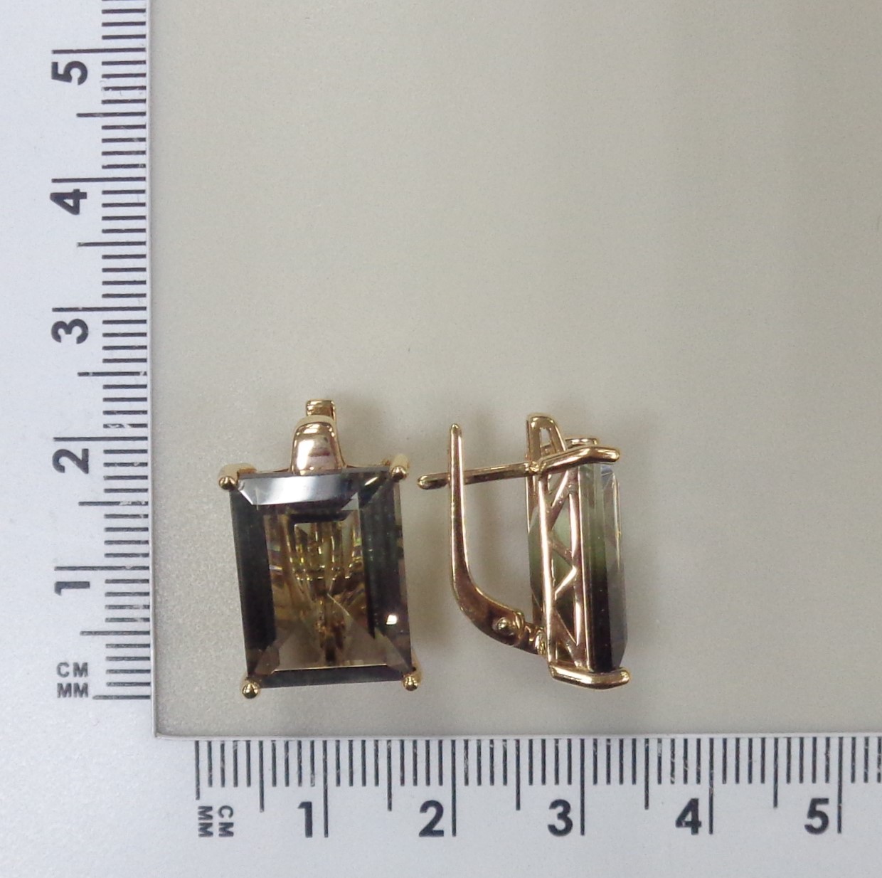 Серьги-пусеты из желтого золота с зелеными бриллиантами